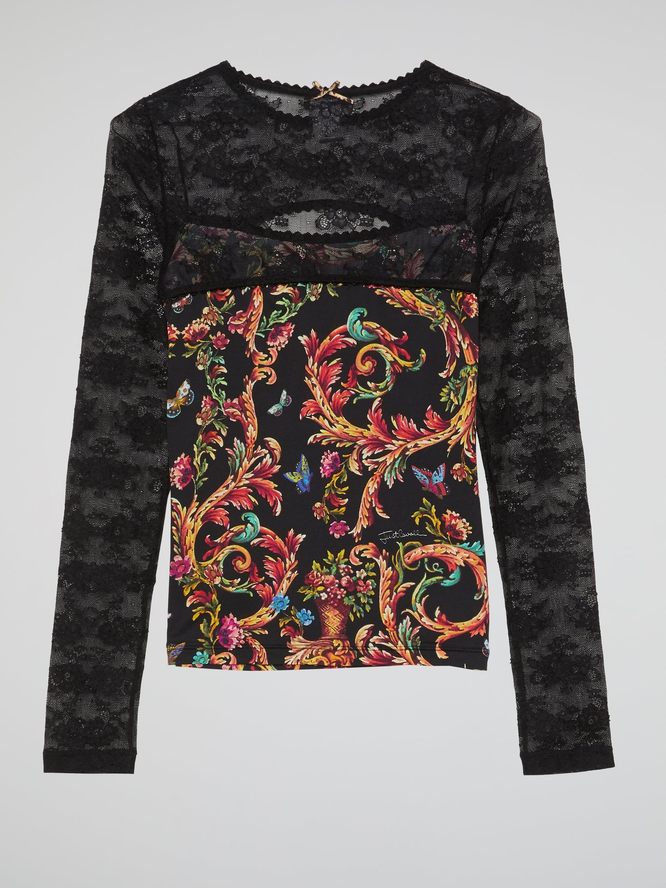 Unleash your inner free spirit with the Paisley Print Lace Panel Top from Just Cavalli. Featuring a vibrant paisley pattern and delicate lace detailing, this top exudes bohemian chic style. The relaxed fit and lightweight fabric make it perfect for a carefree day out or a night on the town.