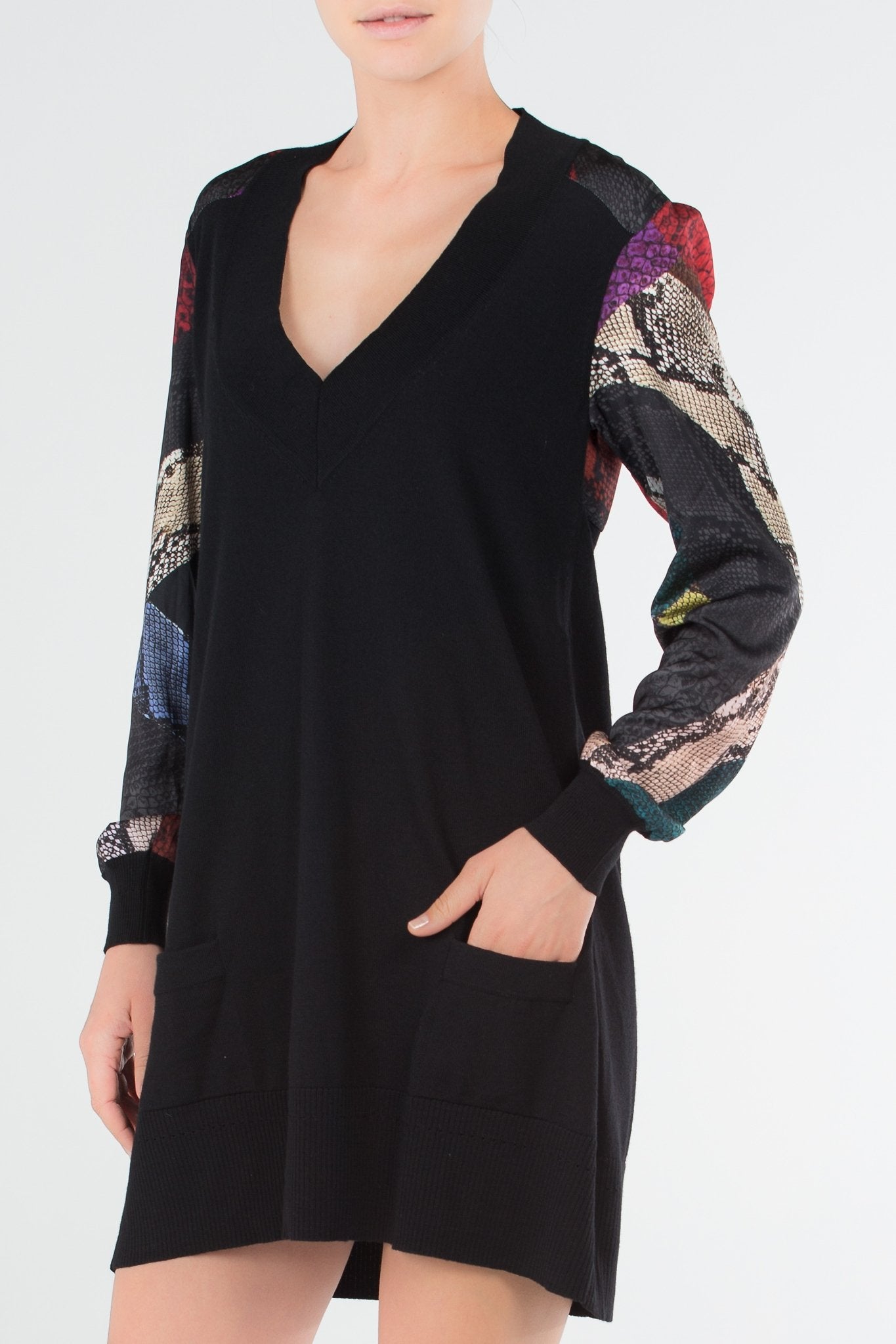 This eccentric dress conveys sophistication with a dash of class. Meticulously woven in eye-catching fabric, it features a flattering neckline and sports neat hemming for a refined feminine form. This mini-length regalia's fashion-forward aesthetic and iconic pattern make it an easy choice to elevate your style for any special evening engagements.REF. FW16S02CT0500N14554BK01CVXS
