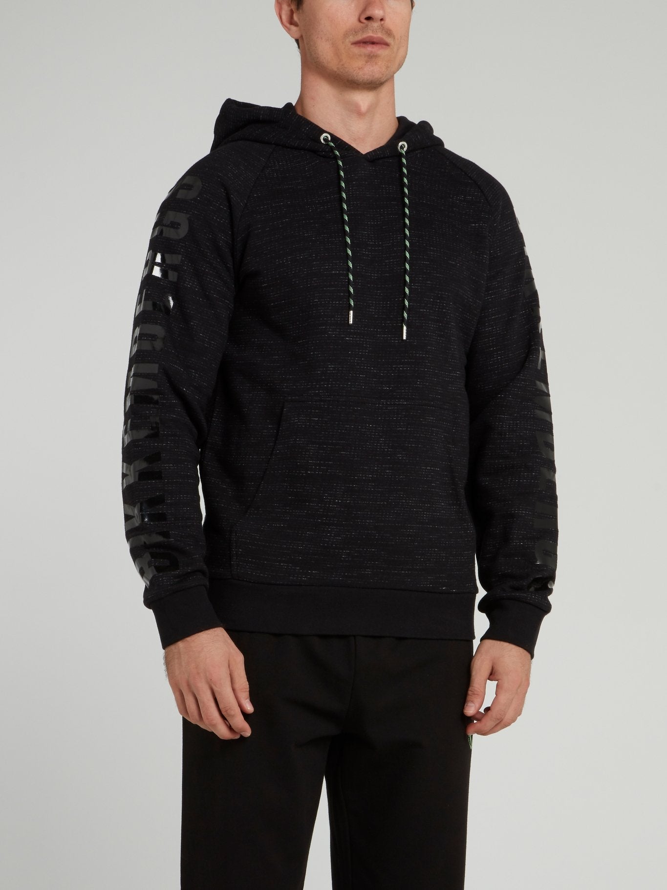 Black Logo Sleeve Hoodie Sweatshirt