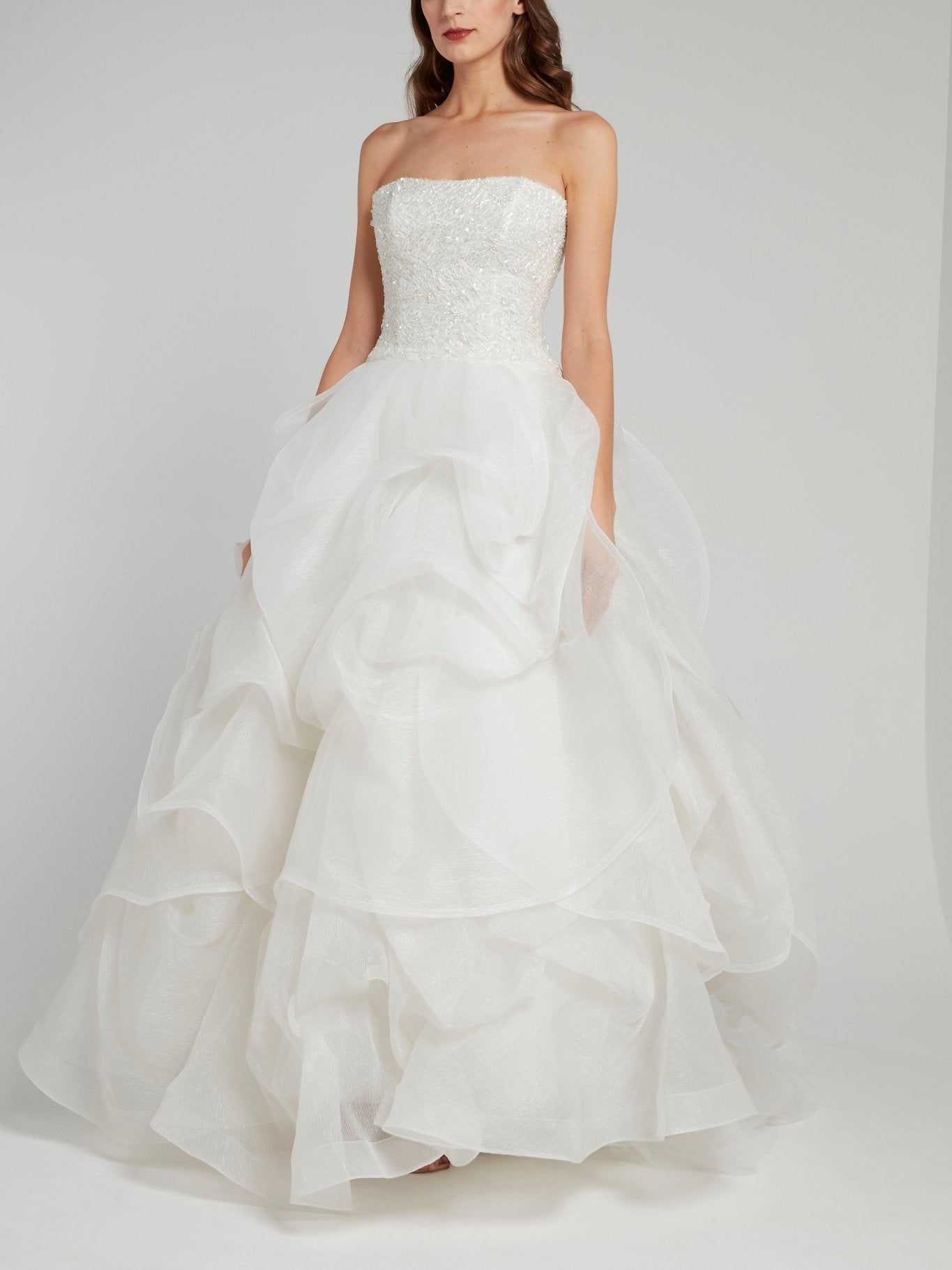 This exquisite gown is illustrated by graceful lines and classic feminine touches. The slim-fitting masterpiece is crafted in opulent fabric and is accented with a timeless neckline and sumptuous silhouette that provides a dramatic touch. Turn heads as you go by donning this impeccable showpiece at the next soirée.REF. SS17EP11723WH01ELP40
