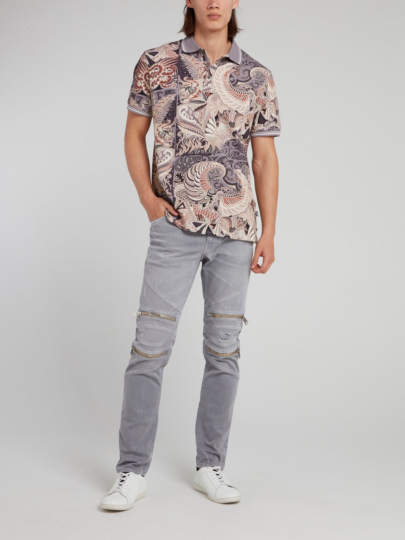 Get ready to step up your fashion game with these stylish Grey Zipper Embellished Distressed Pants from the high-end fashion brand, Just Cavalli. These pants boast a unique and edgy design with zipper details and distressed accents that are sure to catch everyone's eye. They are perfect for those looking to add a touch of excitement and fashion-forward style to their wardrobe.