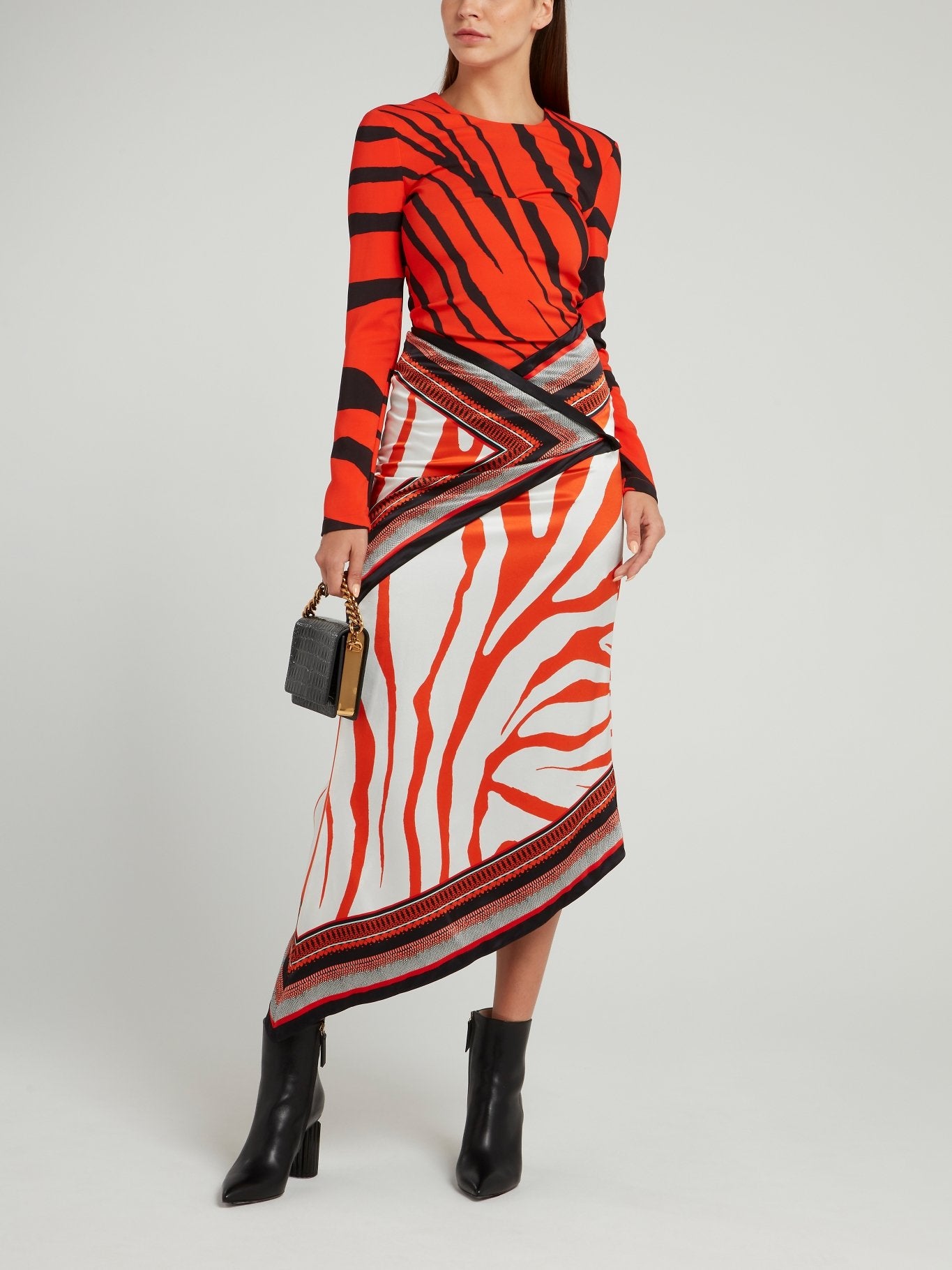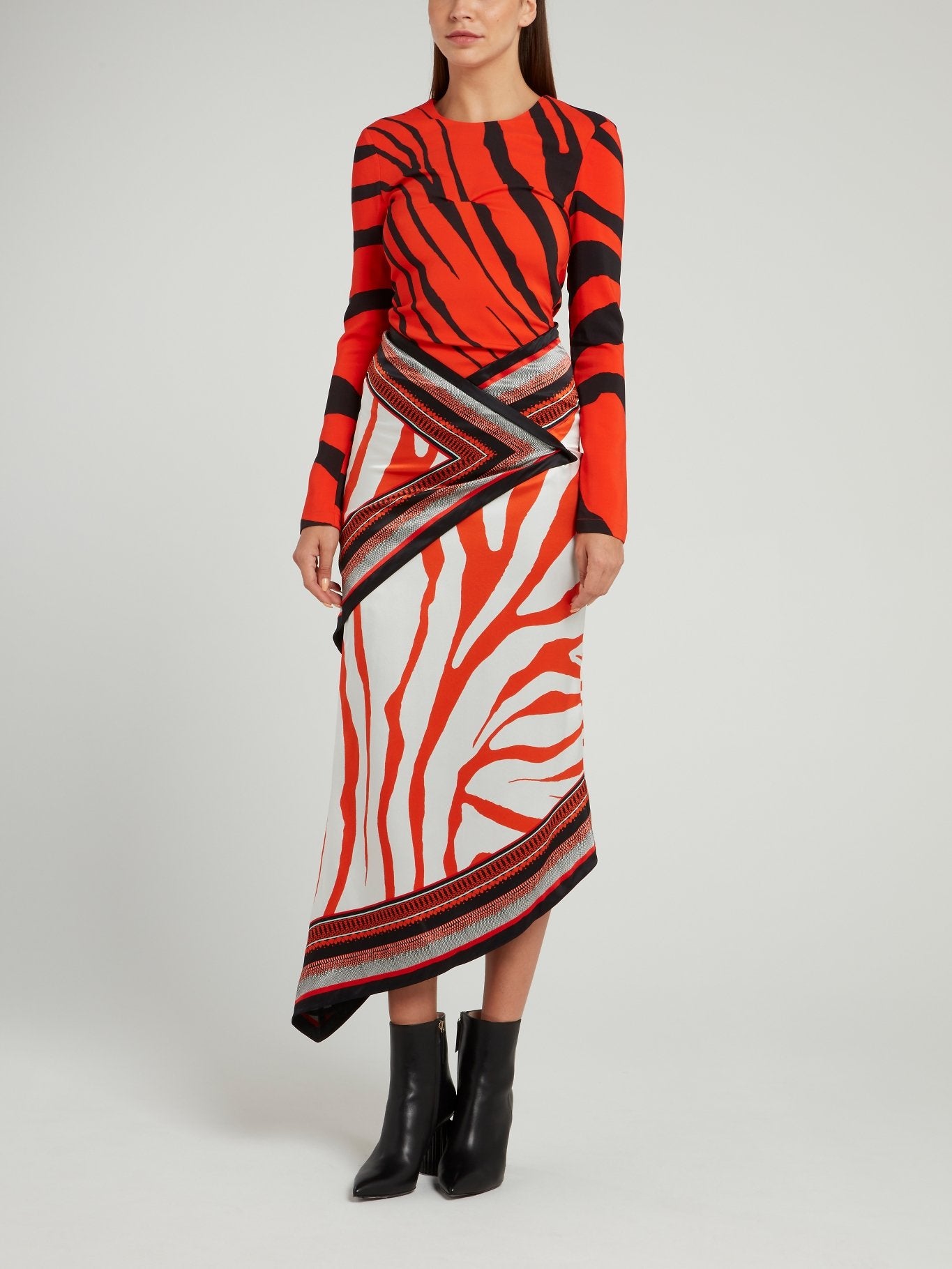 Make a bold statement with this stunning Orange Zebra Effect Wrap Dress by Roberto Cavalli! The eye-catching orange color, paired with the unique zebra effect print, is sure to turn heads. Made with high-quality materials and expert craftsmanship, this dress is the perfect showstopper for any occasion.