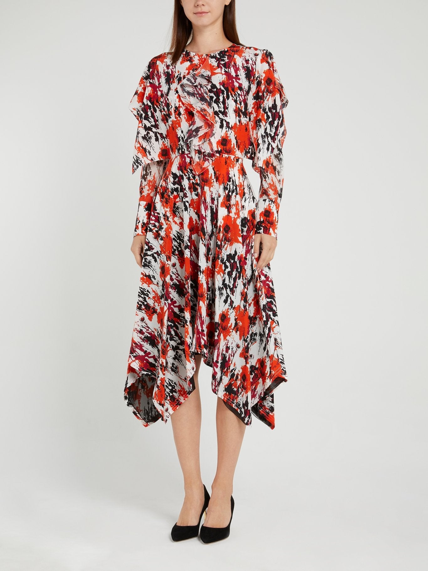 Floral Splatter Ruffle Midi Dress