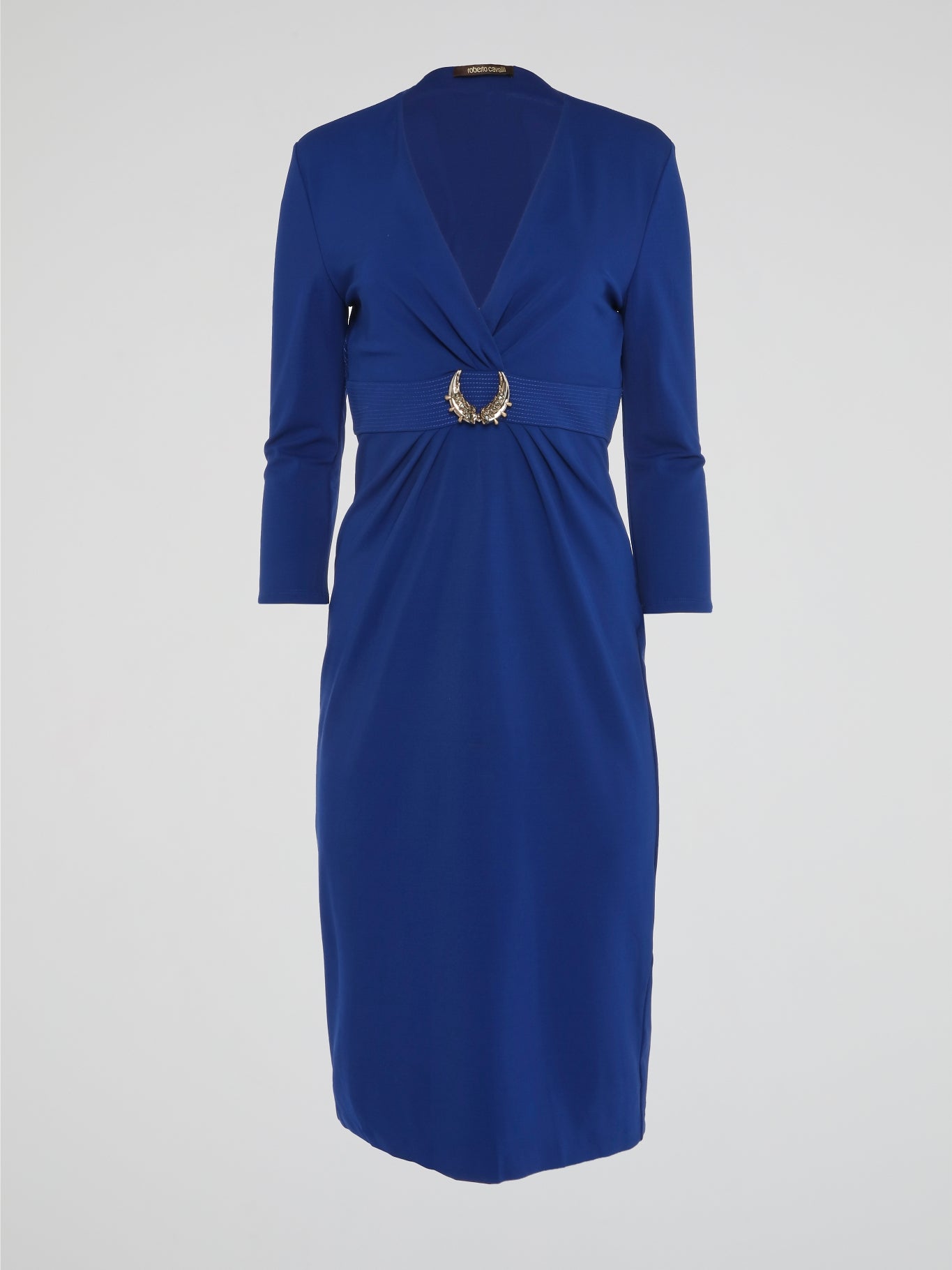 Step into luxury and glamour with this stunning Blue Embellished Plunge Dress by Roberto Cavalli. Its plunging neckline and figure-hugging silhouette create a jaw-dropping effect, while intricate beadwork and exquisite embellishments elevate this dress to a work of art. Whether you're attending a red carpet event or a special occasion, be the center of attention and exude confidence in this show-stopping Roberto Cavalli masterpiece.