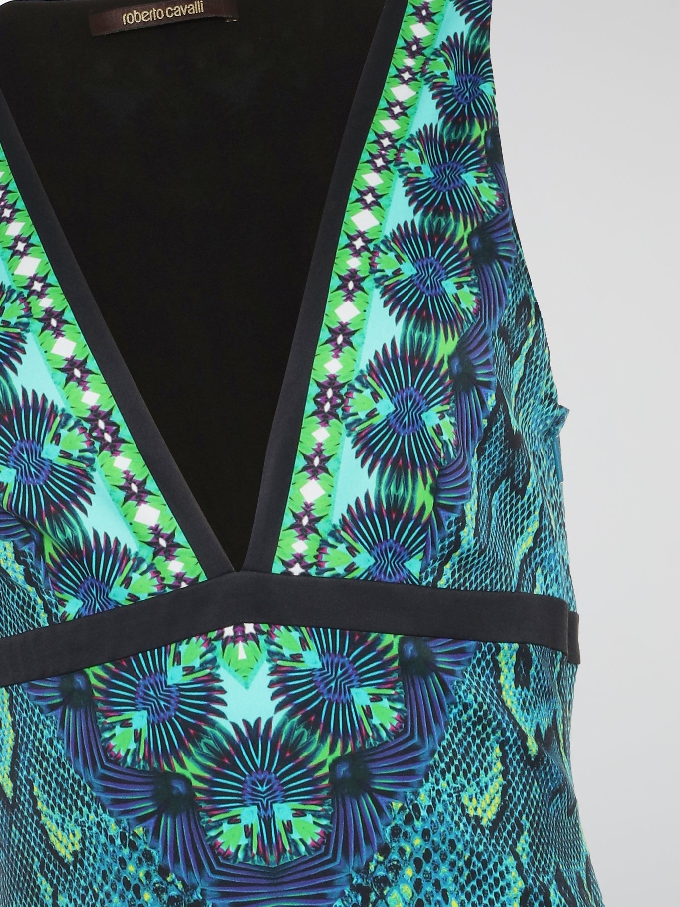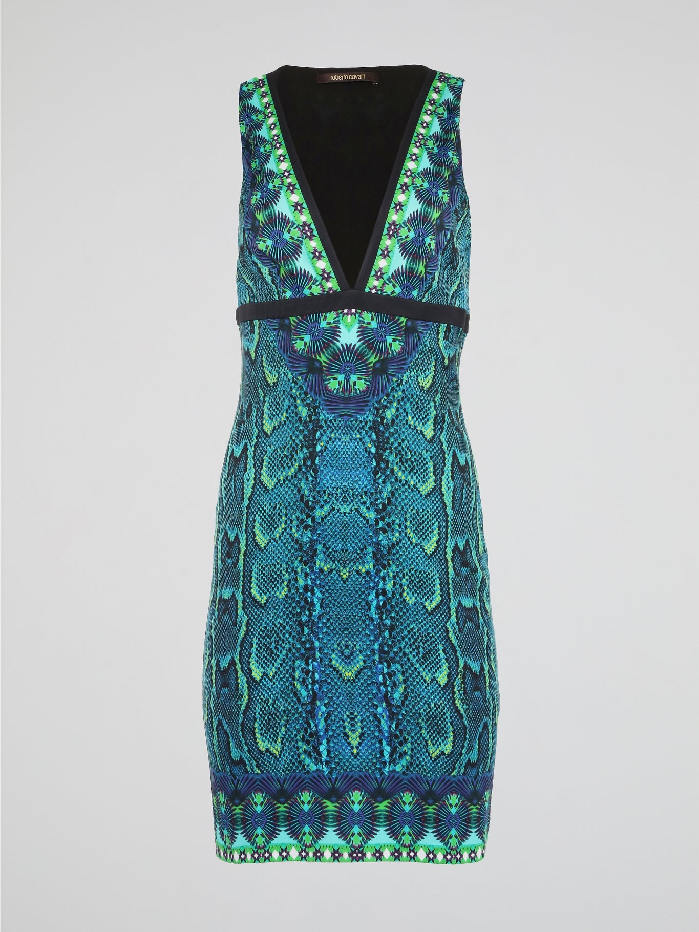 Introducing the ultimate seductive enchantress: the Snake Print Plunge Dress from the iconic Roberto Cavalli collection. Unleash your fierce side as the sinuous python pattern slithers effortlessly across the luxurious fabric, accentuating your every curve. With its daring plunge neckline, this dress is destined to make a statement that boldly whispers "danger meets couture".