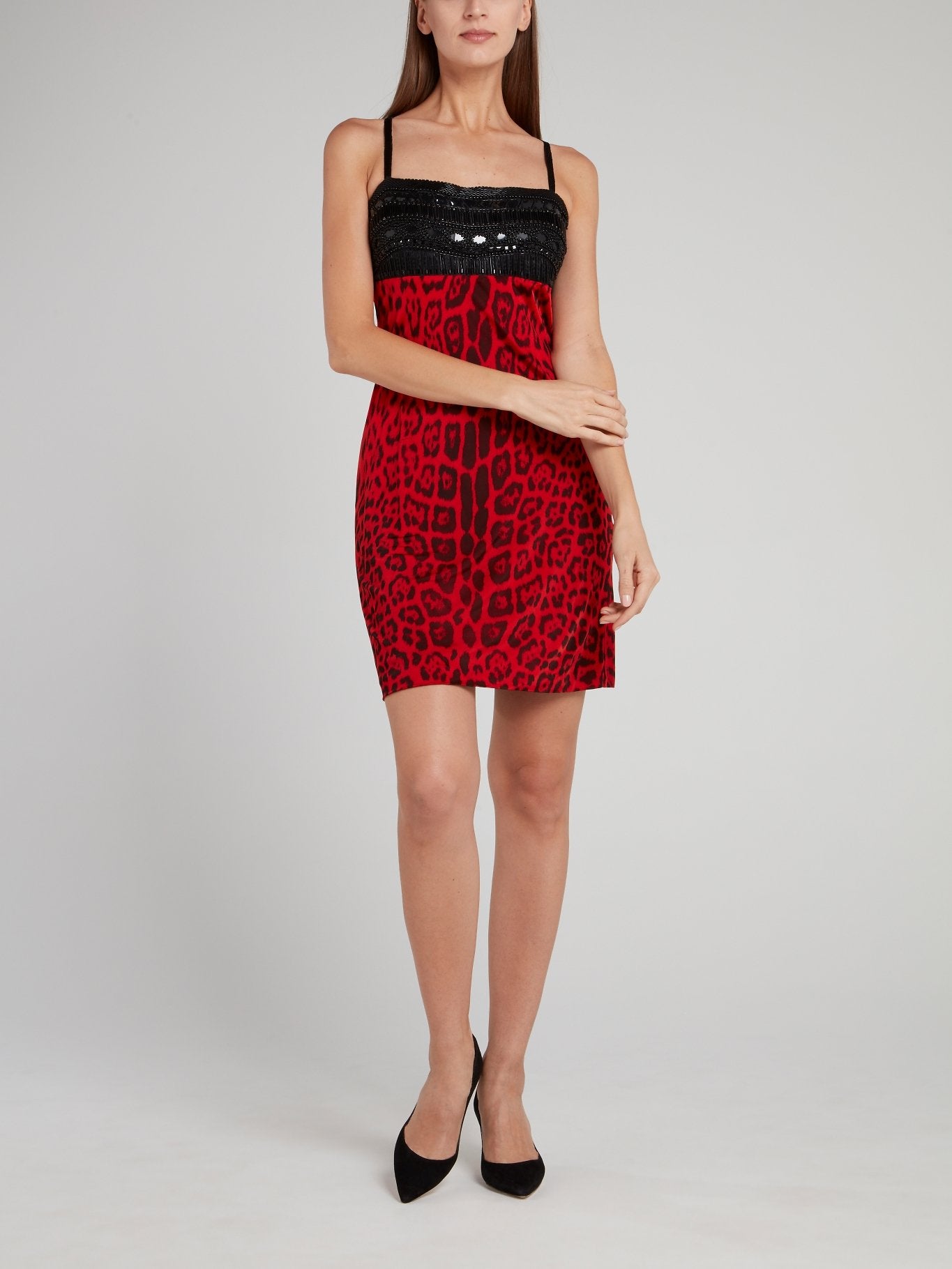 Beaded Bodice Leopard Print Mini Dress