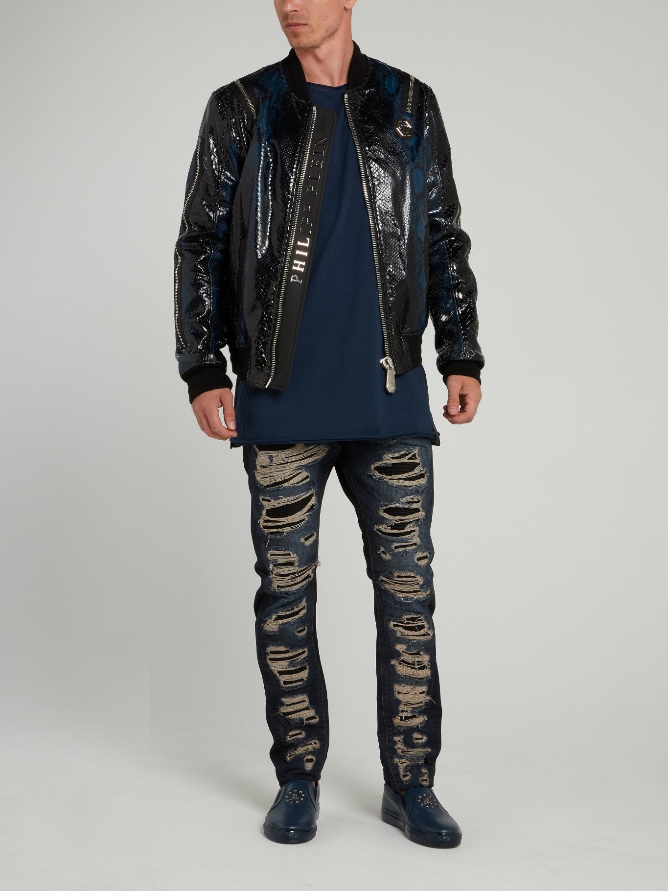 Темно-синяя футболка с круглым вырезом и рукавами до локтя