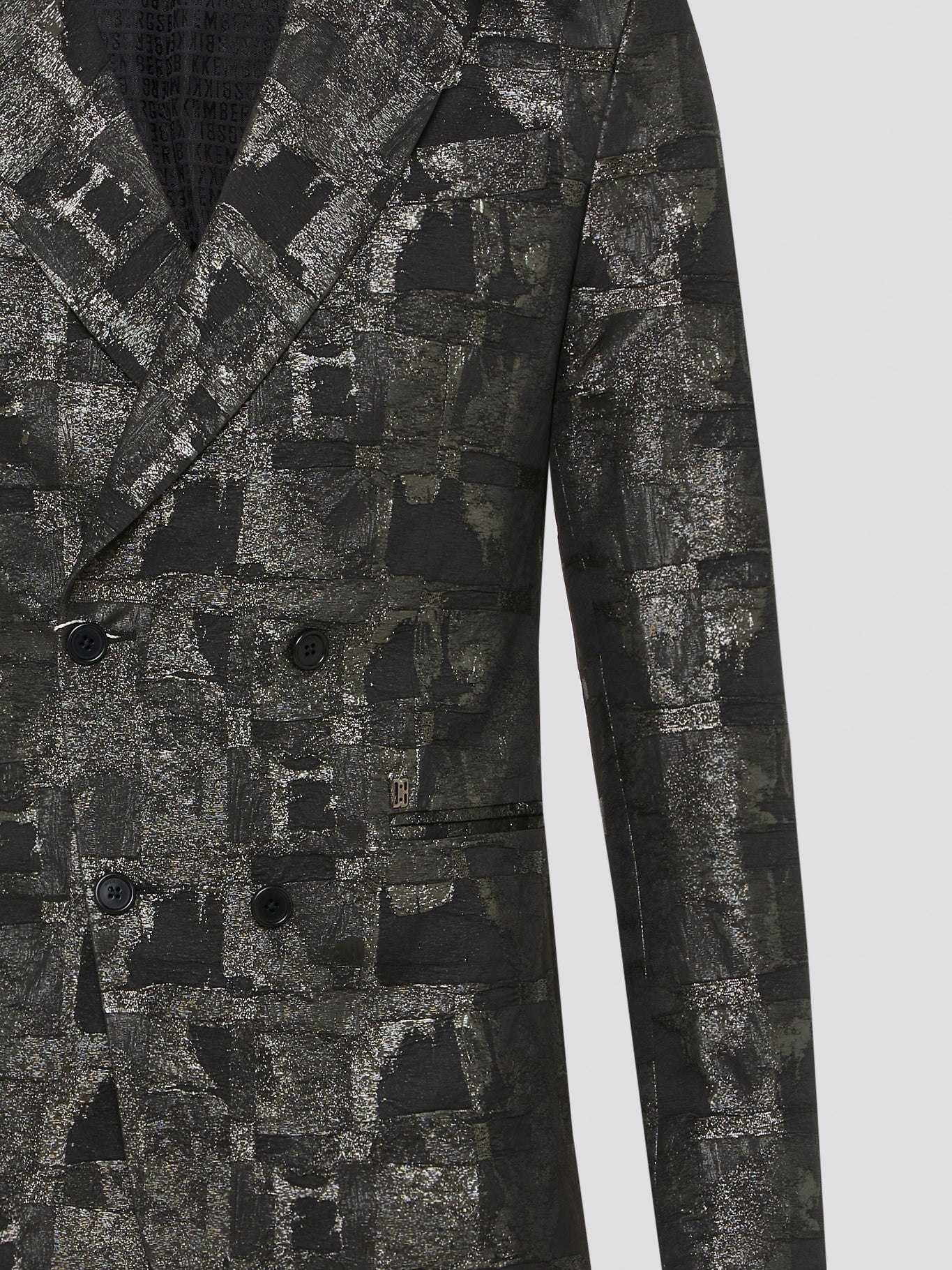Step out in style and make a statement with our Metallic Double Breasted Blazer by Bikkembergs. Crafted with high-quality materials and attention to detail, this blazer features a shiny metallic finish that is sure to turn heads. Whether you're dressing up for a special occasion or adding a touch of glam to your everyday look, this blazer is a must-have piece for your wardrobe.