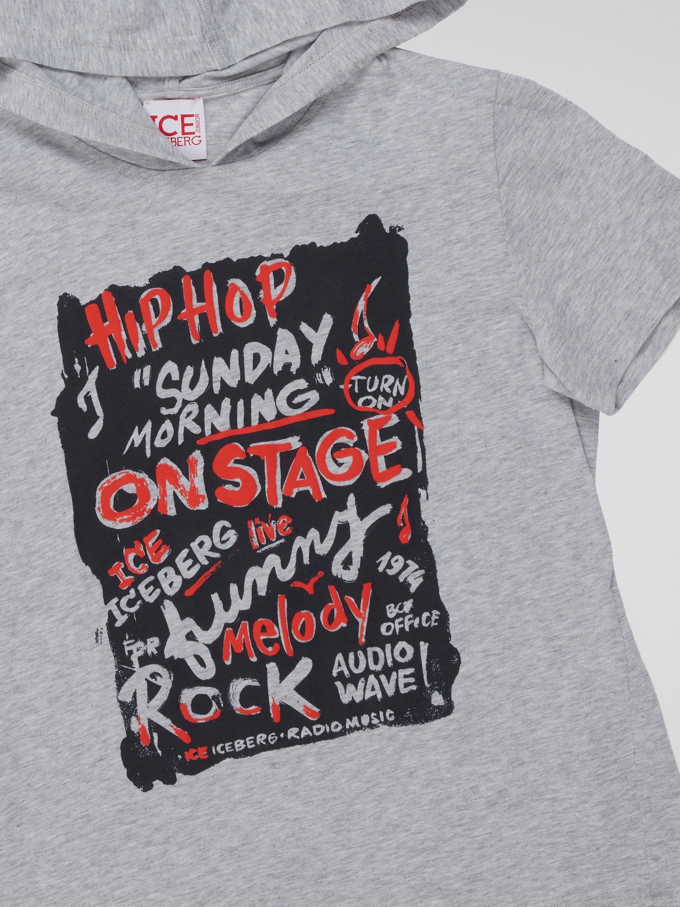 Transform your little one's wardrobe with our Grey Statement Print Hooded T-Shirt from Iceberg. This super-cool and comfy tee merges urban style with playful charm, featuring an icy-blue iceberg print that adds a unique twist to their outfits. With its cozy hood and soft fabric, this t-shirt is perfect for keeping them stylishly snug all day long.