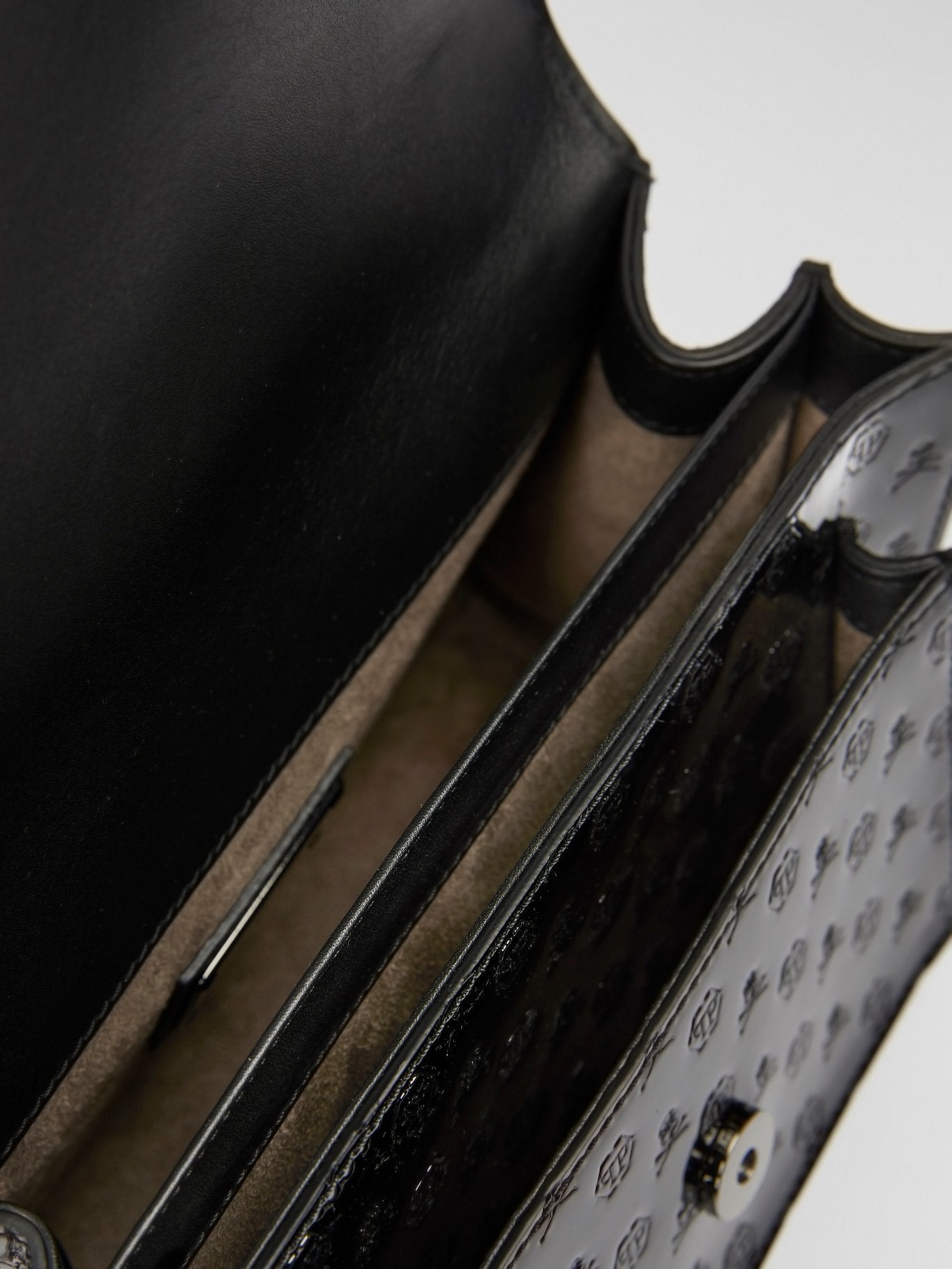 Indulge in the ultimate luxury with the Begonia Monogram Shoulder Bag from Philipp Plein. Crafted from high-quality leather, this elegantly designed bag boasts a sophisticated monogram print and soft gold-tone hardware for a touch of glamour. With its spacious interior and adjustable strap, this must-have accessory is perfect for adding a touch of sophistication to any outfit.