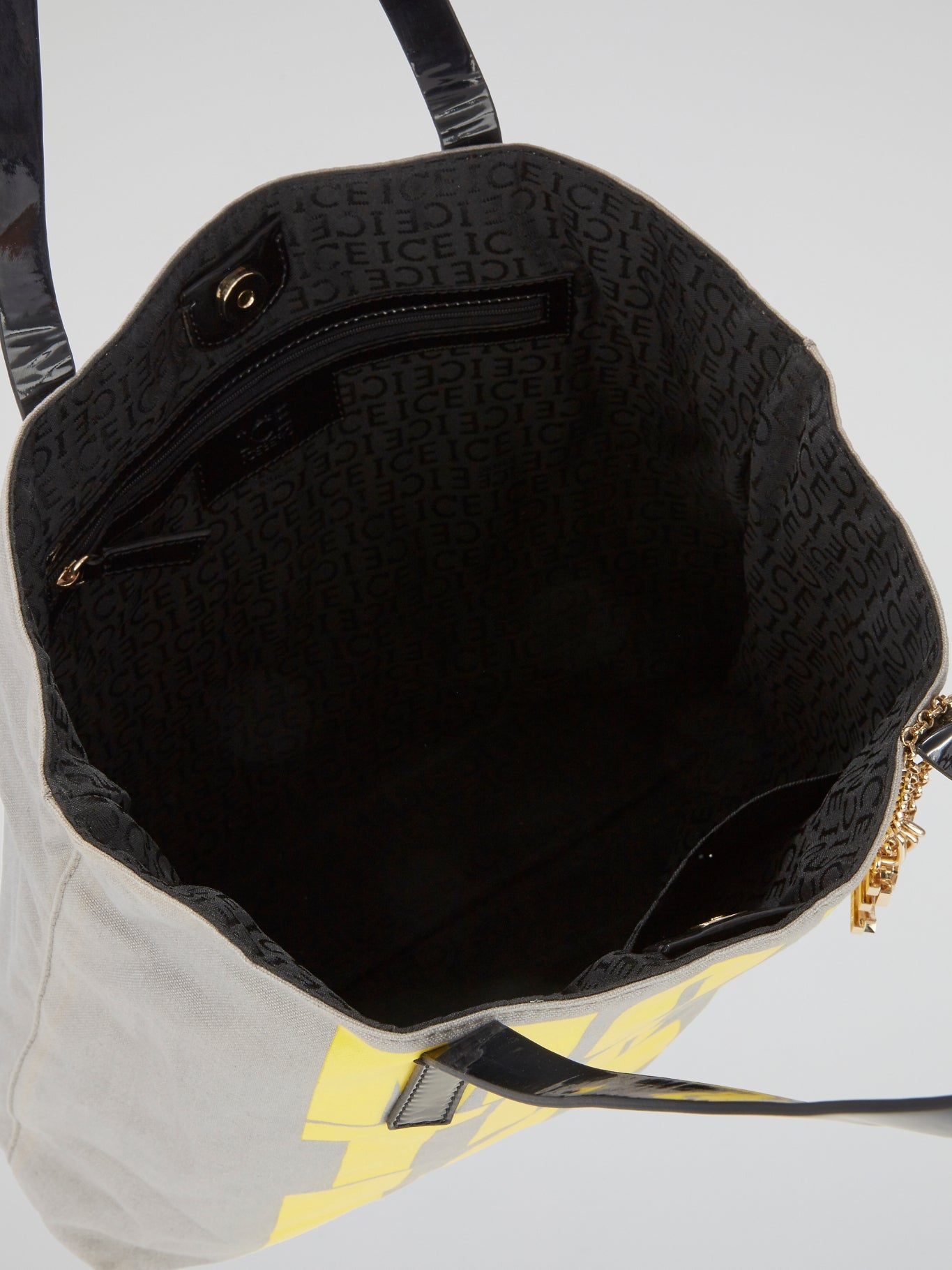 Add a pop of personality to your daily essentials with the Grey Text Tote Bag by Iceberg. Featuring the playful phrase "More than Ice" in bold yellow, this tote is more than just a bag, it's a statement. Stay stylish and lighthearted with this must-have accessory.