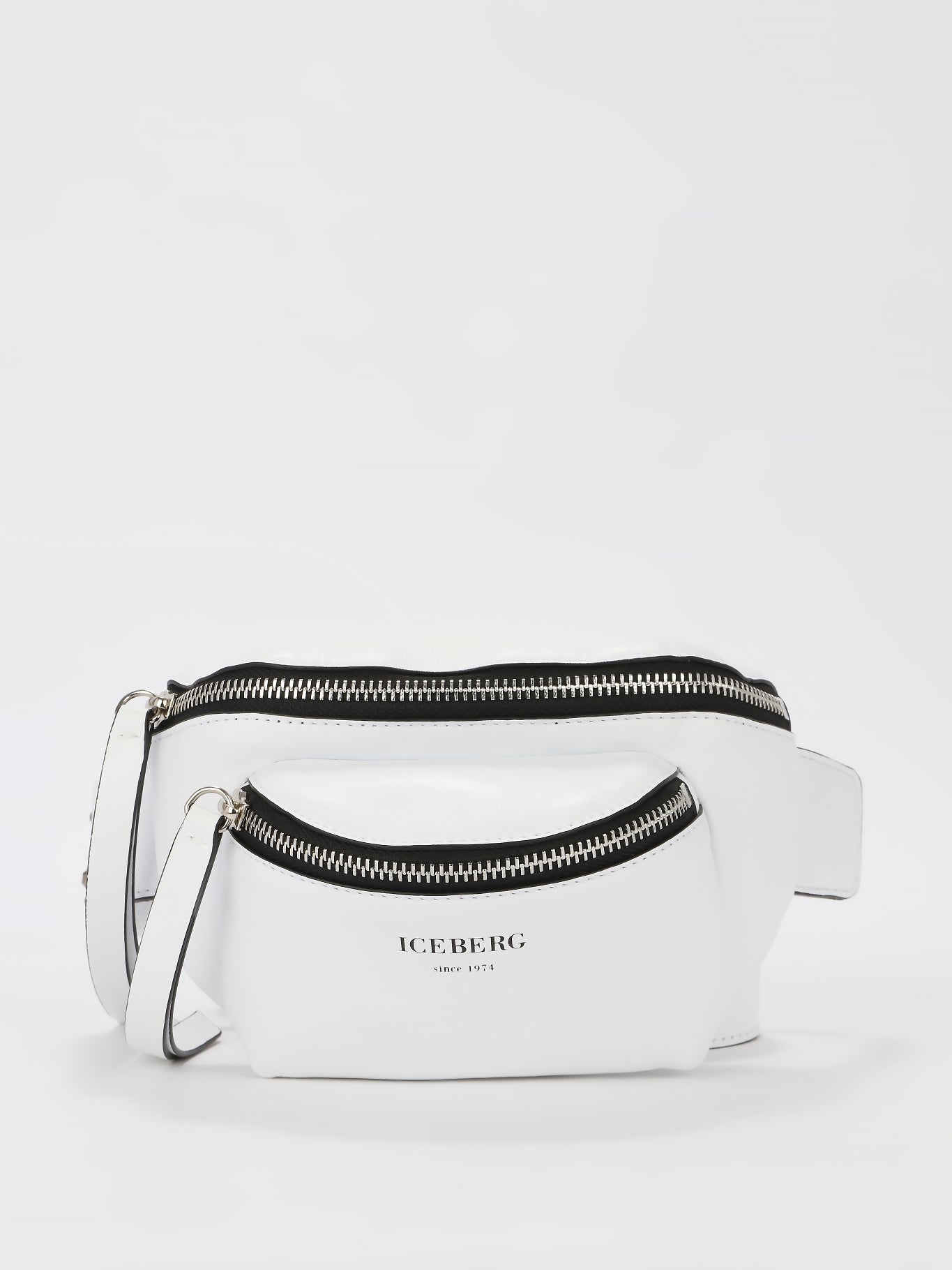 Introducing the ultimate style weapon for your wardrobe: the White Studded Strap Leather Belt Bag by Iceberg. Effortlessly blend fashion with function with this must-have accessory that will take your outfit to the next level. The chic combination of white leather and studded strap creates a unique and edgy look perfect for modern trend-setters.