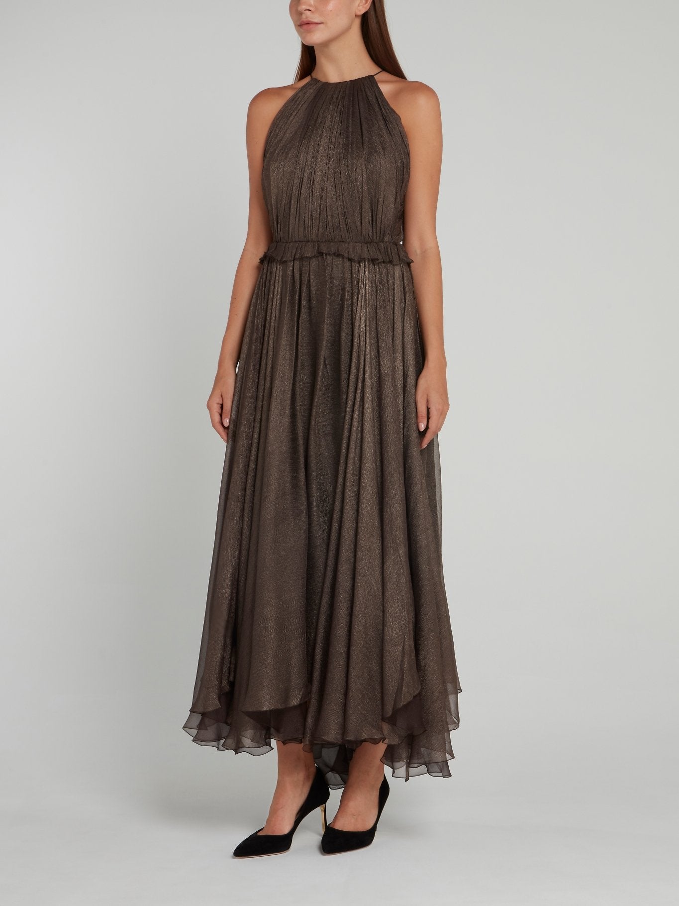 Frill Halter Silk Maxi Dress