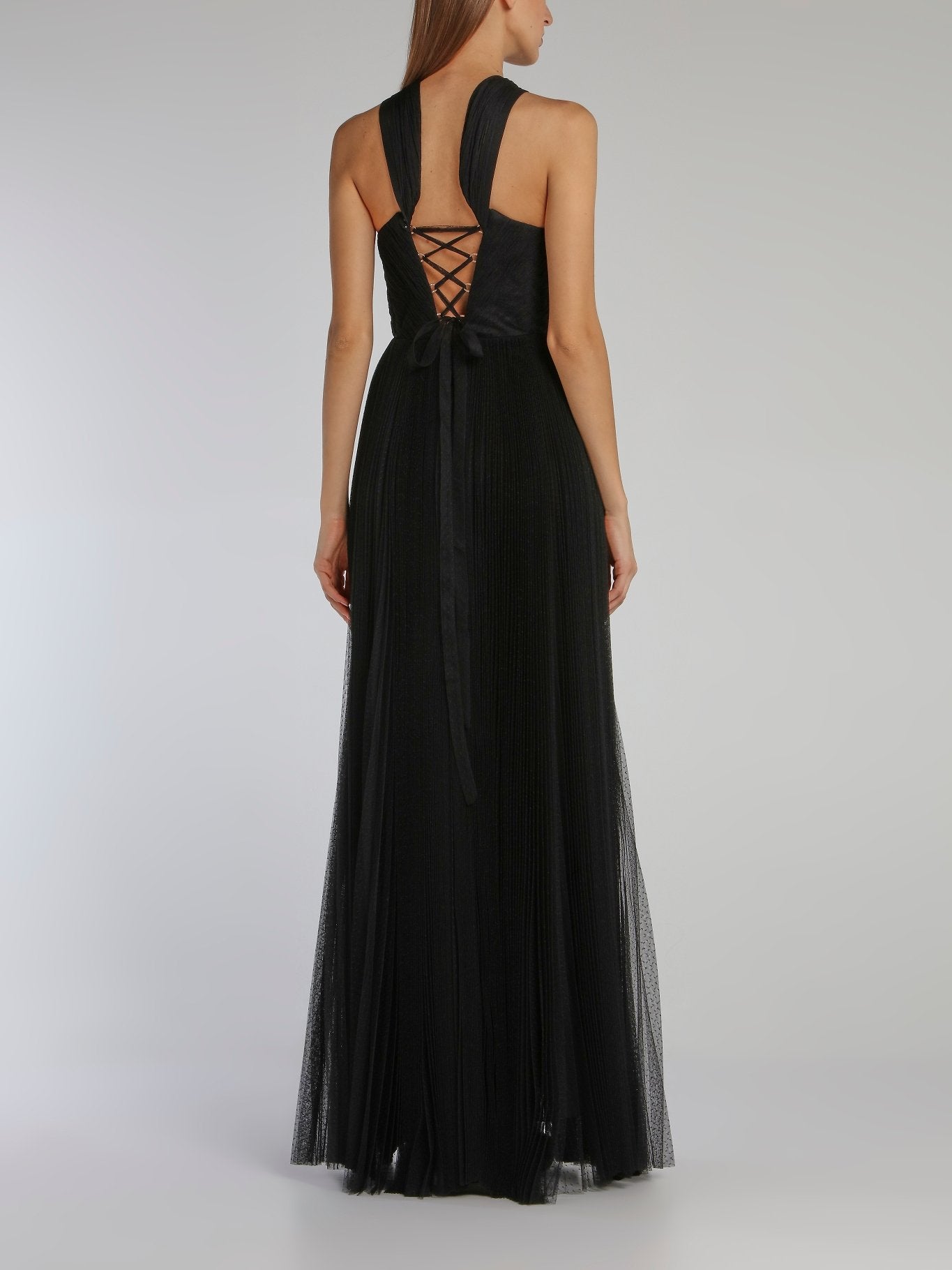 Wear this gorgeous gown to make a bold entrance at the next black-tie event. It's made of luxurious fabric and falls from the neckline through a stunning silhouette to the floor-skimming hem. Show off the regalia's sartorial elegance with glittering crystal-set jewellery and classic stiletto heels.REF. FW19LUCIANABLKMLH144