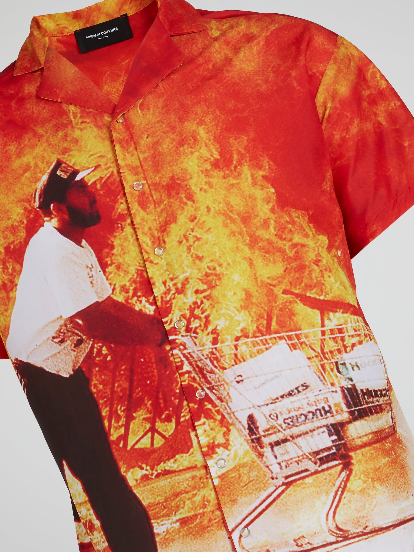 Introducing the Graphic Print Button Up Shirt by Mnml Haute Couture - a bold and daring addition to your wardrobe that will have heads turning. With a striking design that combines futuristic elements with a classic button-up style, you'll be the trendsetter everyone wants to be. Made with premium quality materials, this shirt offers both comfort and style that is unmatched.