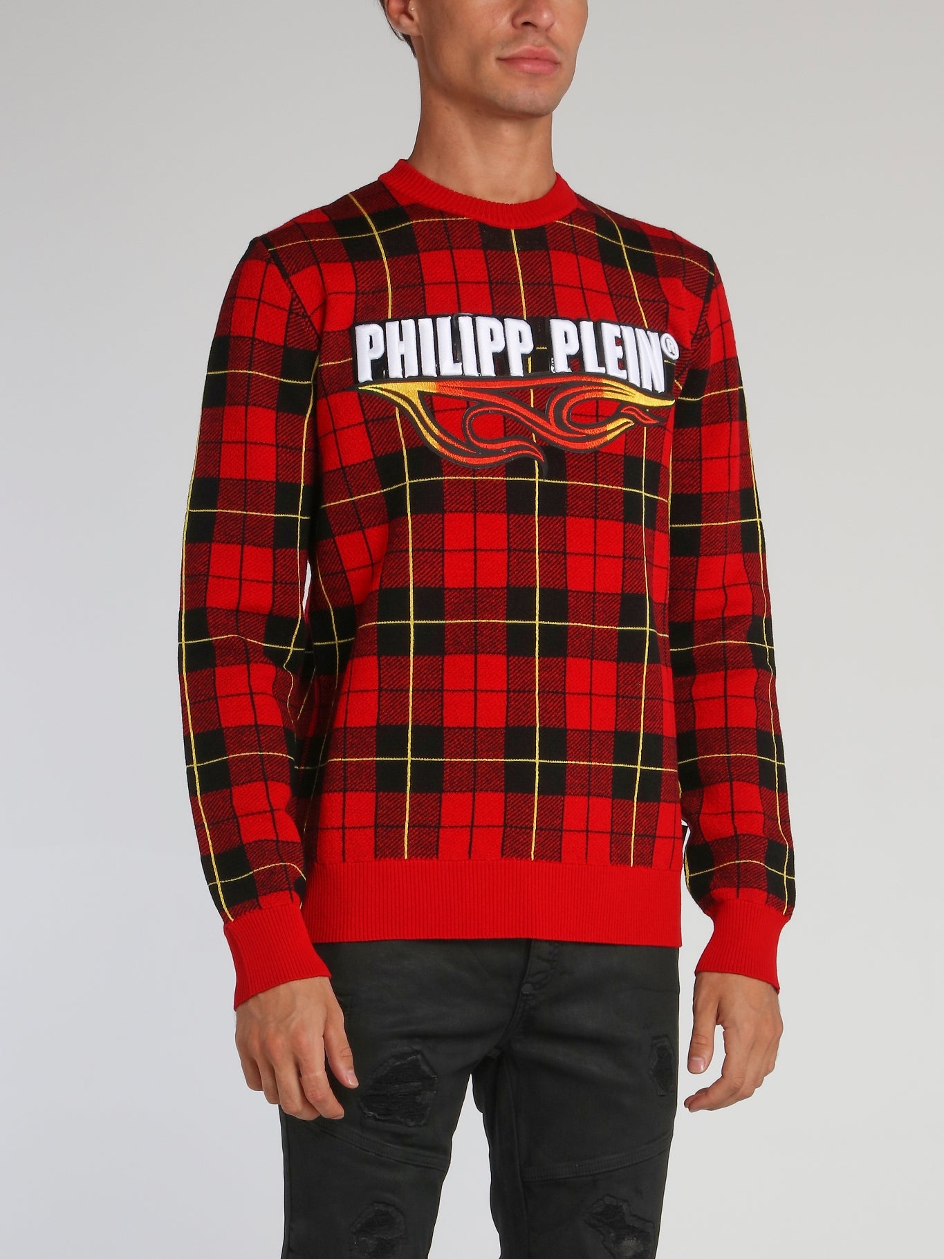 Get cozy in high style with the Red Check Knit Pullover by Philipp Plein. This bold and playful sweater features a striking red woven fabric patterned with iconic black checks, and is made with the highest quality materials to provide both durability and comfort. Whether you dress it up or down, this Knit Pullover is sure to turn heads wherever you go!