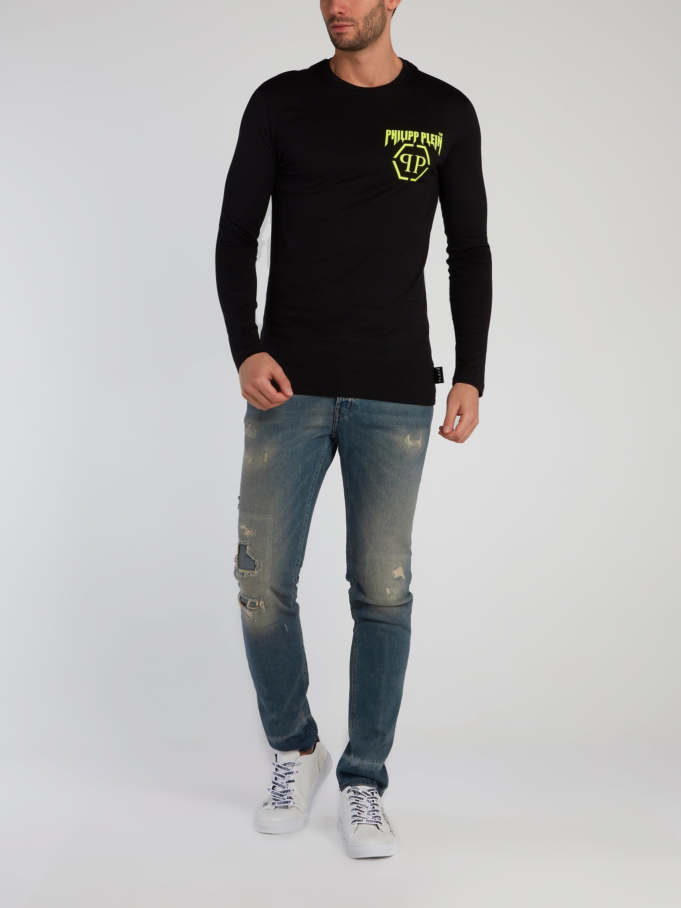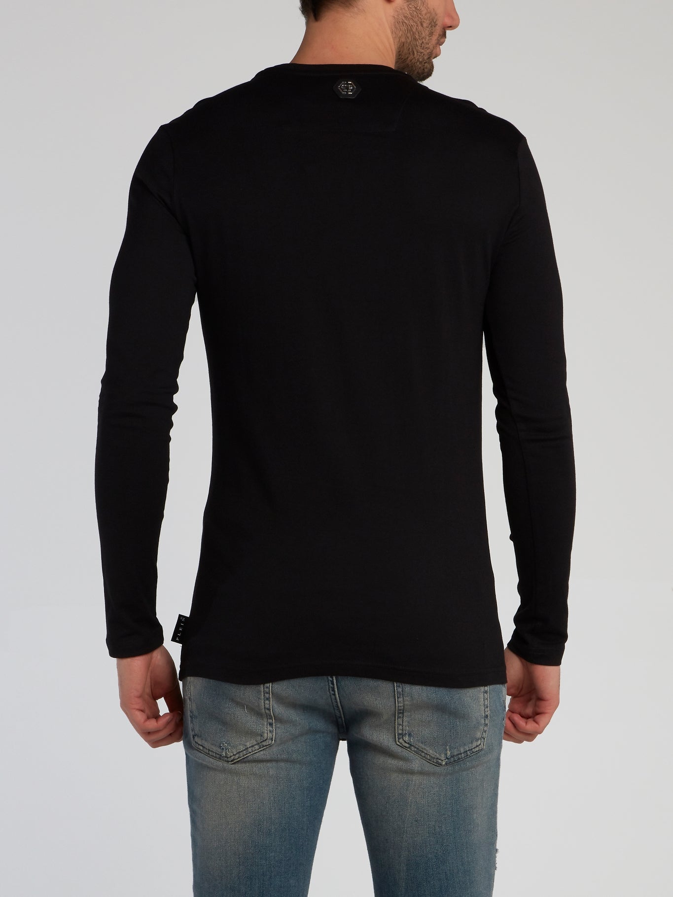 Unleash your inner rebel and embrace the edgy style of the Black Long Sleeve T-Shirt by Philipp Plein. Made with premium materials, this tee features bold graphic prints and intricate embroidered detailing that elevate its overall aesthetic. Whether you're hitting the streets or making a statement at a party, this T-shirt is the perfect addition to any fashion-forward wardrobe.
