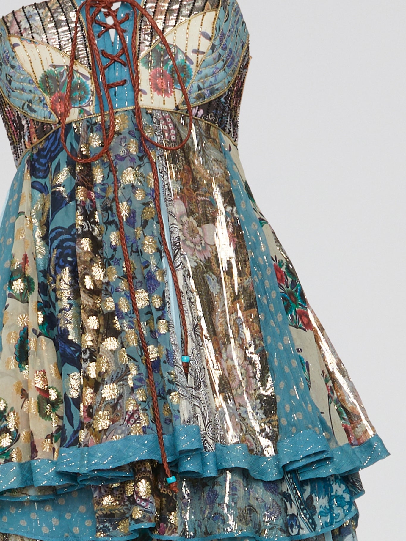 Tiered Frill Lace Up Maxi Dress