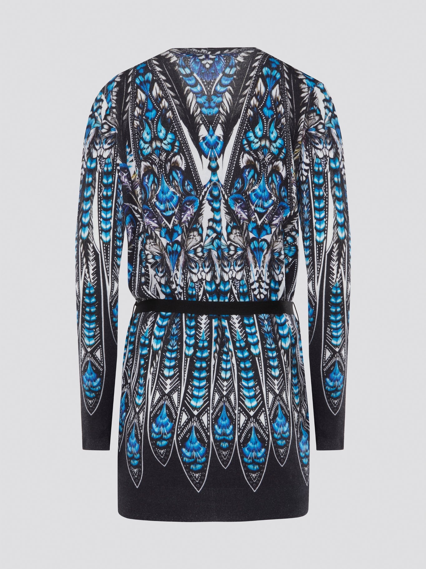 Step out in style with the Roberto Cavalli Printed Tie-Front Cardigan - a chic and sophisticated addition to any outfit. The luxurious fabric and intricate print combine to create a truly eye-catching piece that will effortlessly elevate your wardrobe. Whether paired with jeans for a casual look or layered over a dress for a night out, this cardigan is sure to become a staple in your closet.