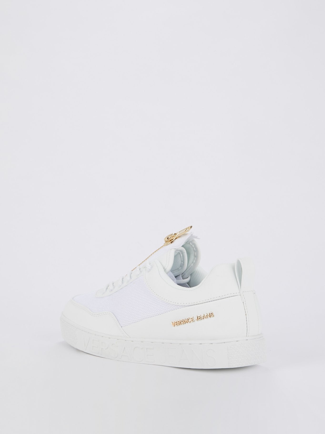 Slip into style with our White Zip Up Mesh Sneakers from Versace Jeans. Made with high-quality materials, these sneakers are durable and comfortable enough for any adventure. With a unique mesh design and sleek white color, they'll take your outfit to the next level and leave everyone talking.