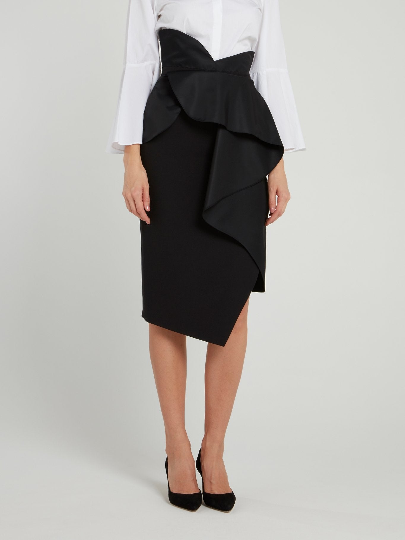 Черная юбка-миди с оборками