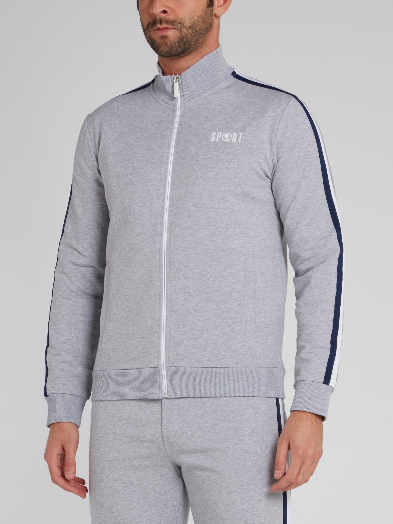Серая толстовка с полоской на рукавах и логотипом Sport