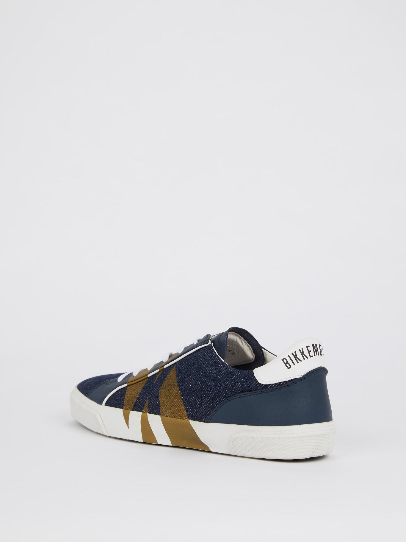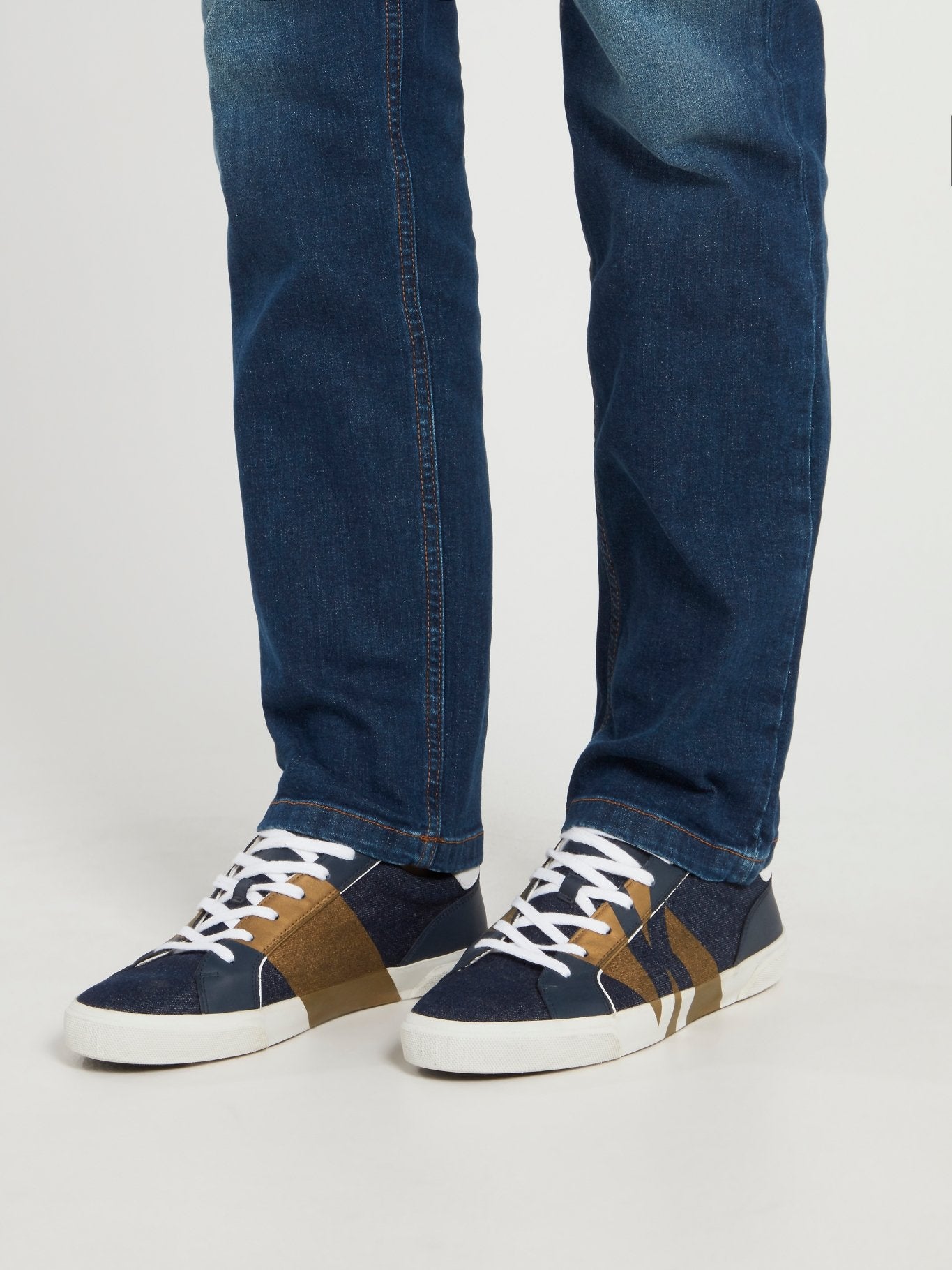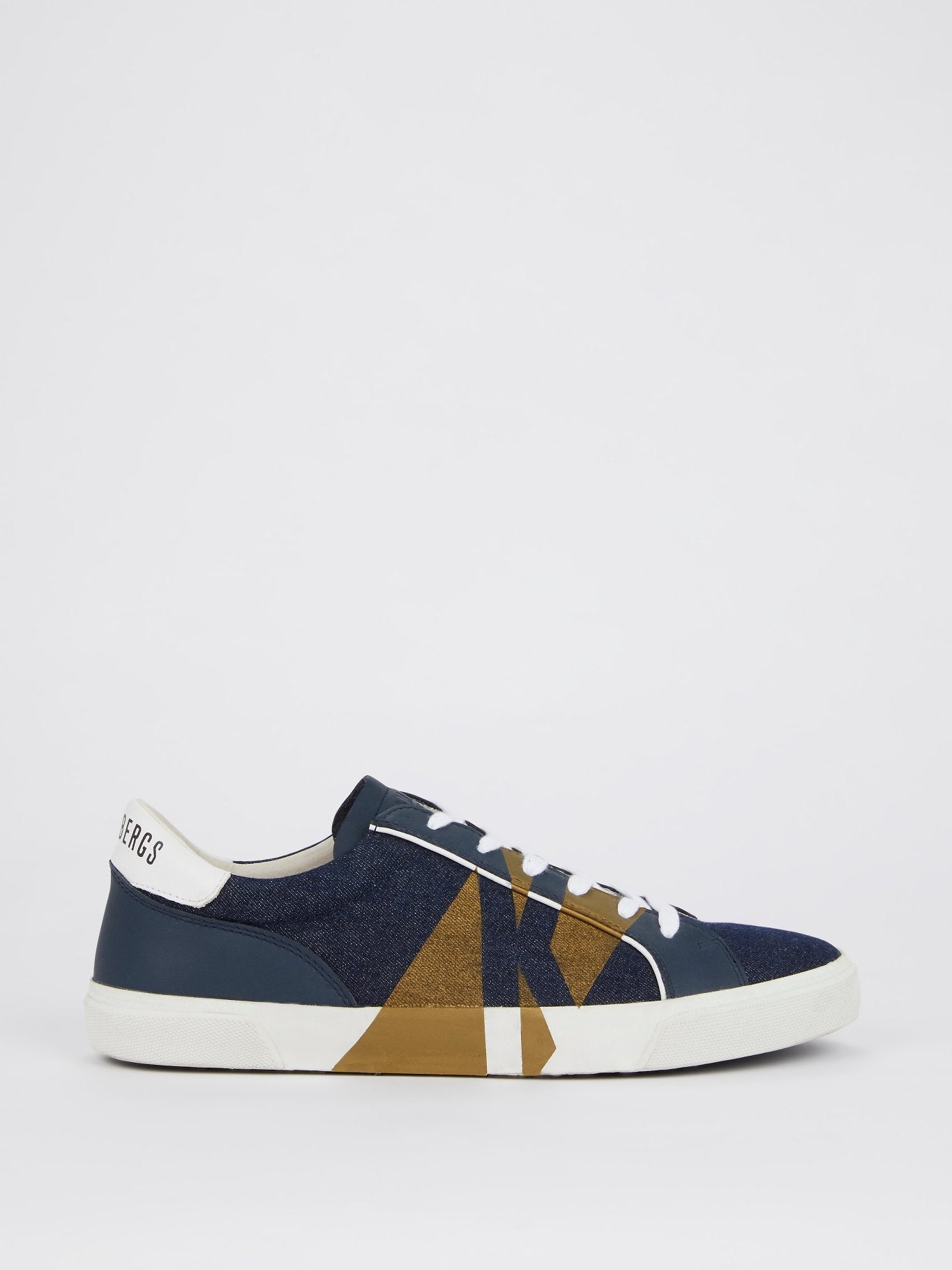 Темно-синие джинсовые кроссовки с золотыми полосками