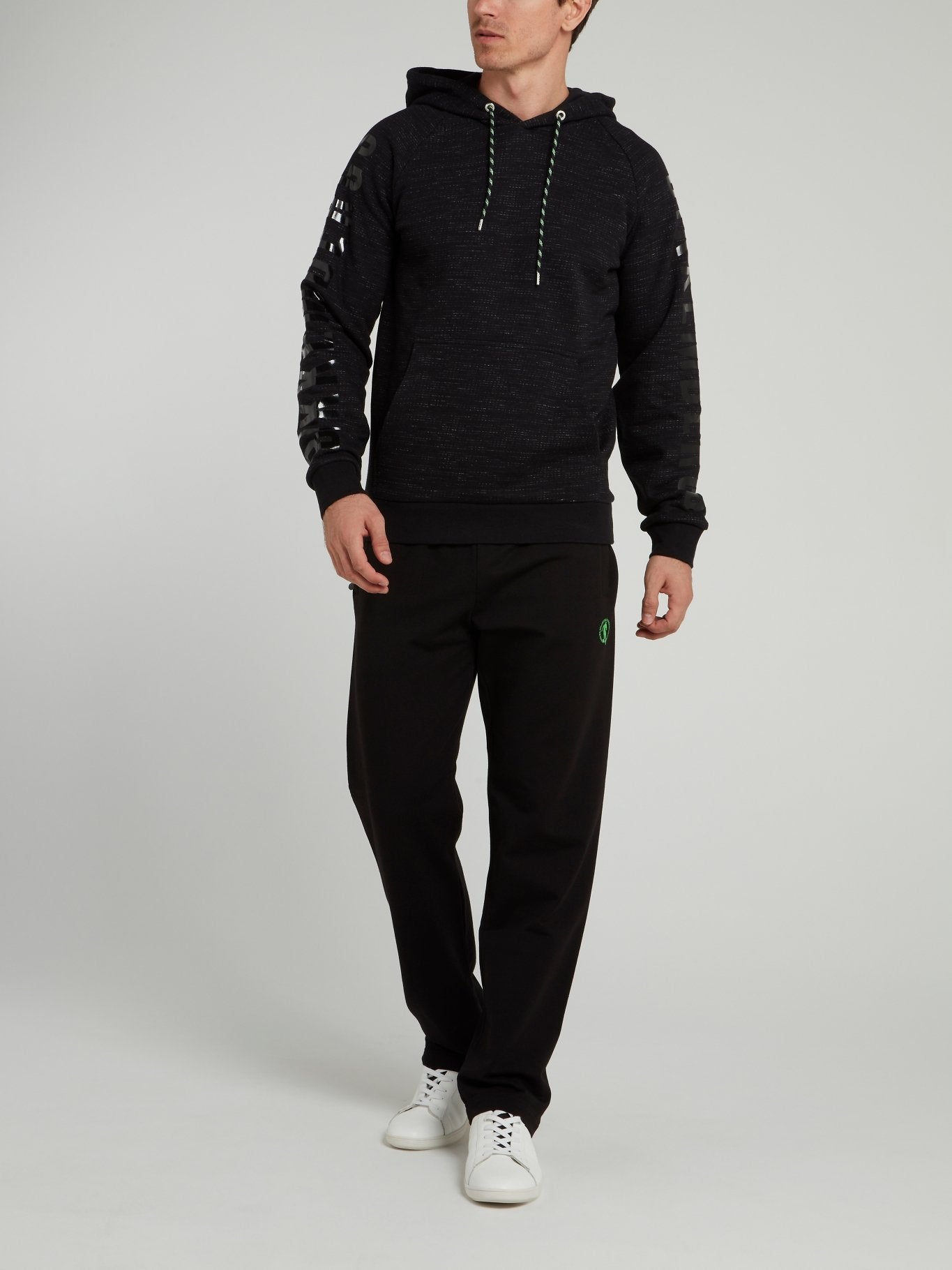 Черное худи с логотипом на рукавах