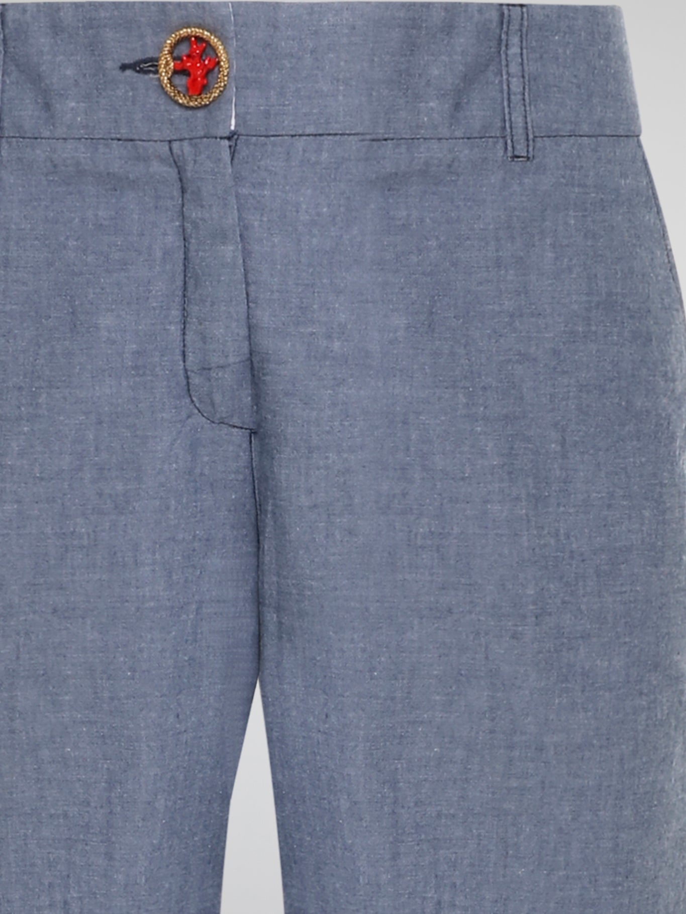 Elevate your summer wardrobe with our stunning Blue Palazzo Pants from Roberto Cavalli. Crafted from luxurious materials, these pants offer a flattering silhouette and effortless style. Make a statement at any occasion and turn heads with these bold and vibrant pants that scream high fashion.