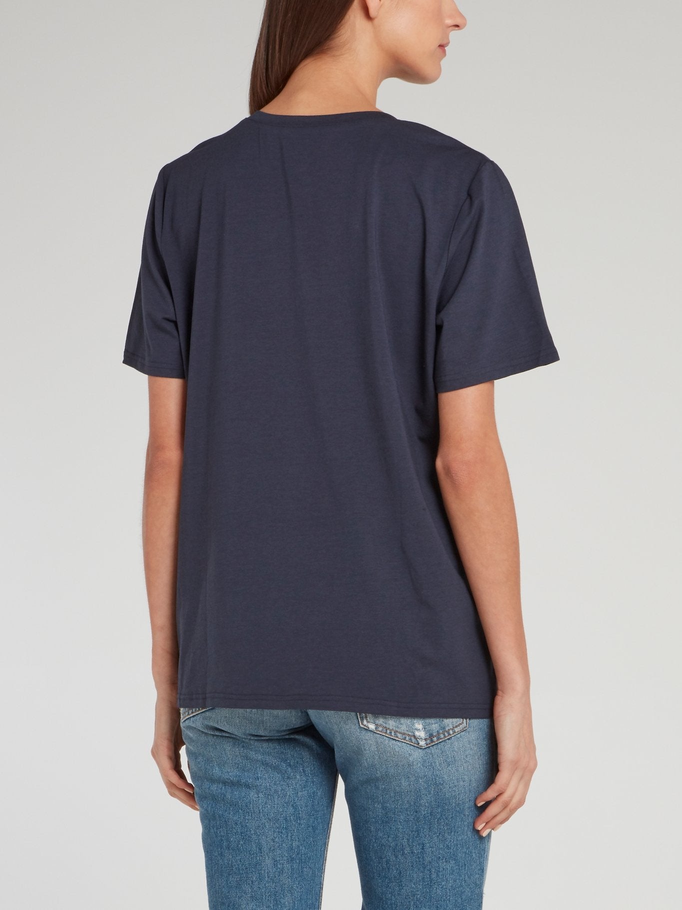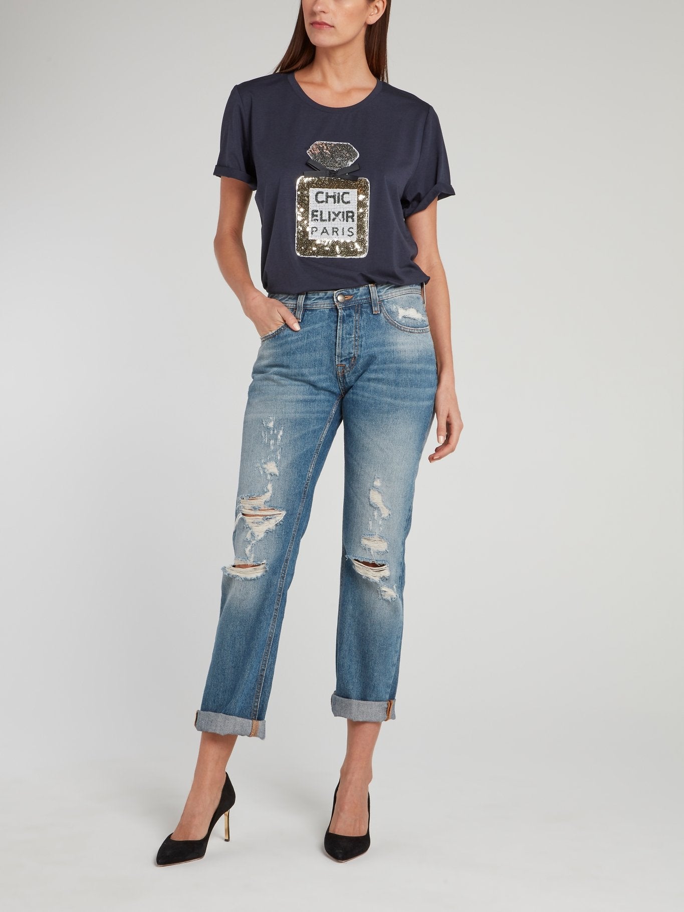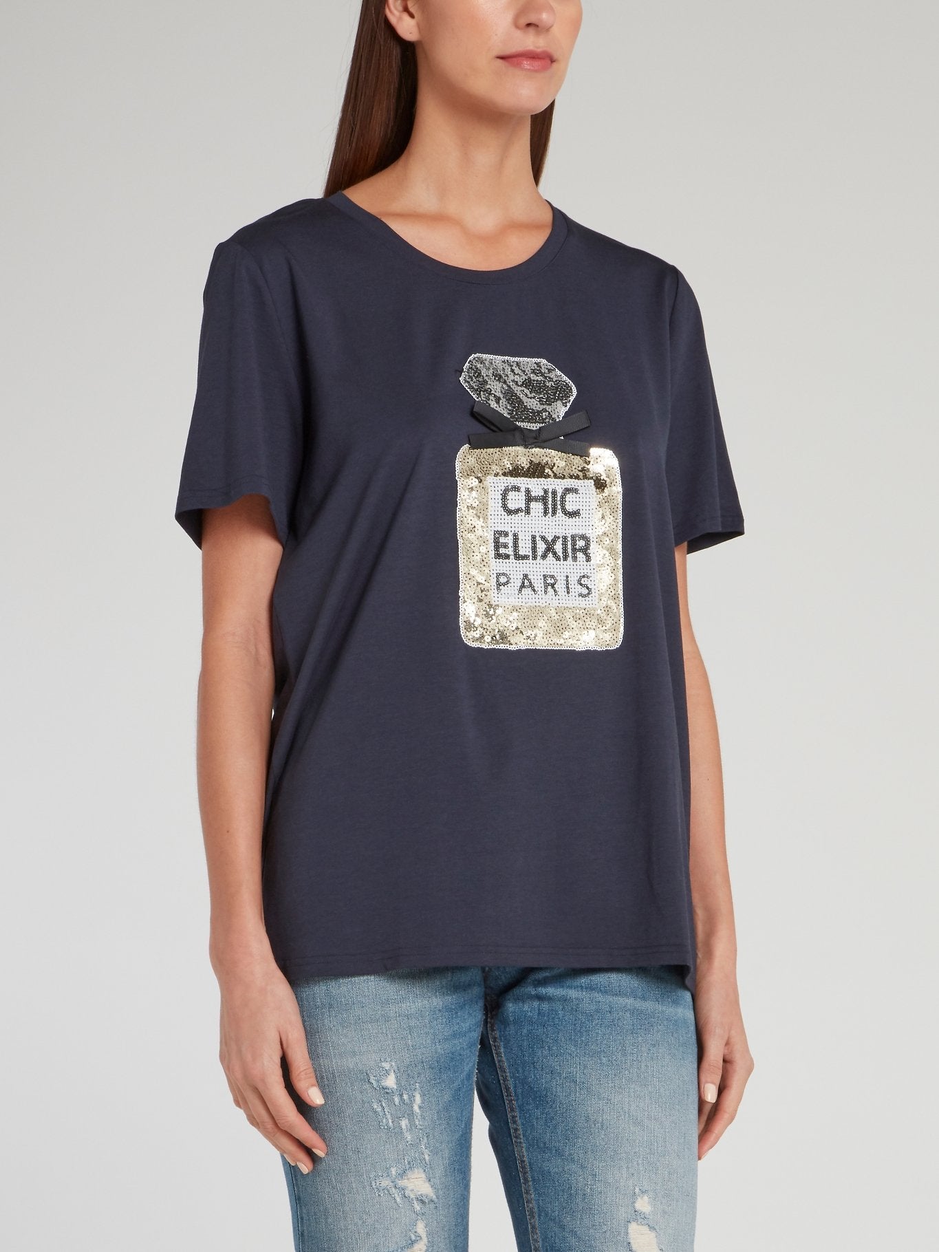 Elevate your casual wardrobe with the Navy Sequin Embellished Cotton T-Shirt from Edward Achour Paris. Crafted from premium quality cotton fabric, this t-shirt boasts a comfortable, relaxed fit that guarantees all-day comfort. The striking sequin detailing on the sleeves and collar adds a touch of glamour, making this t-shirt perfect for dressing up or down.