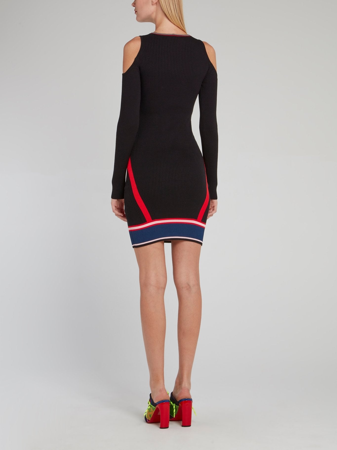 Черное облегающее платье с открытми плечами