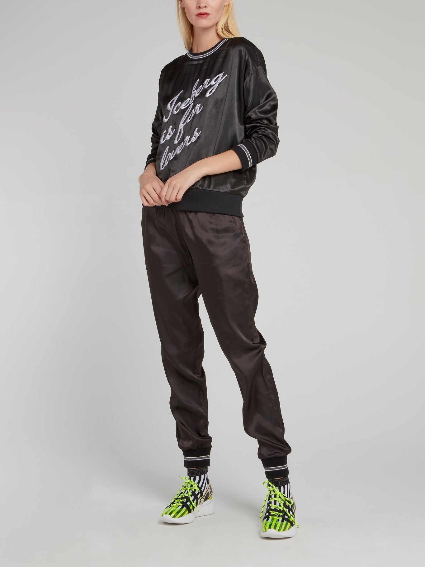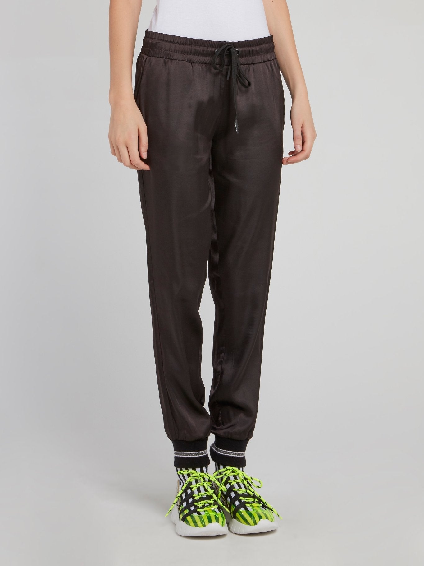 Черные спортивные брюки из вискозы на шнуровке