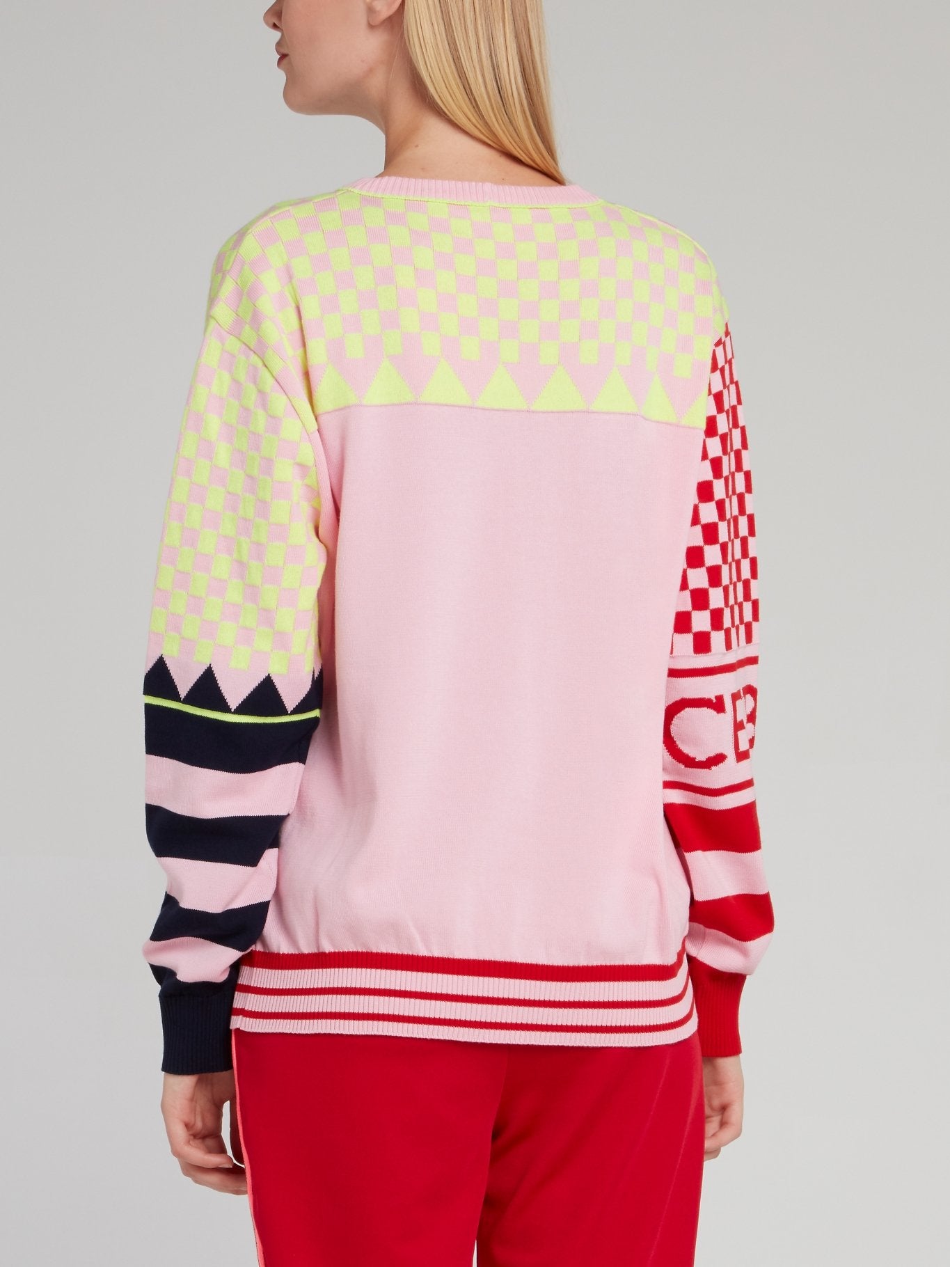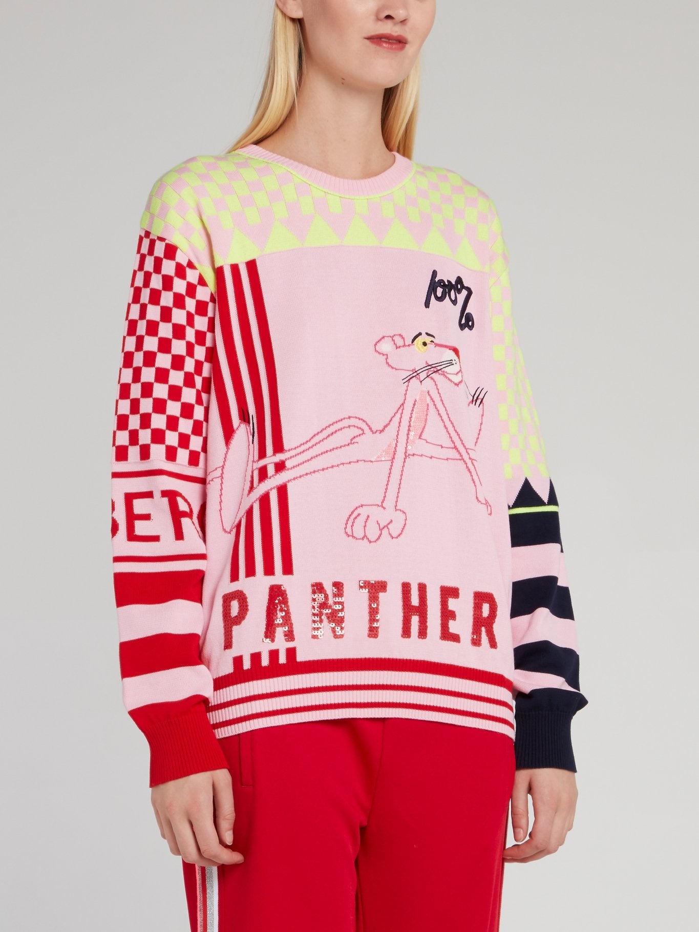 Свитер в клетку с пайетками и рисунком "Розовая пантера"
