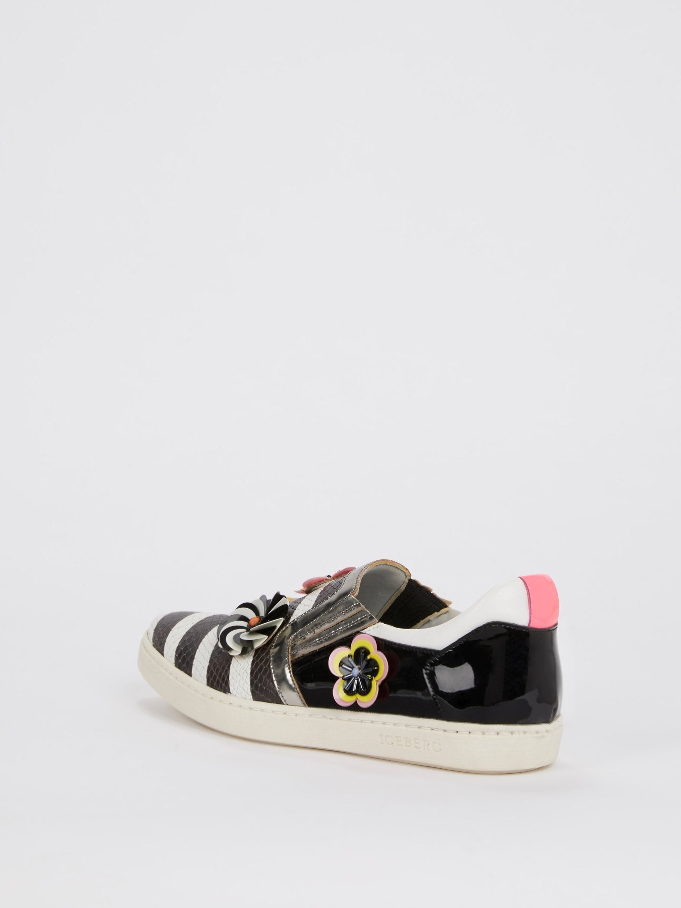 Snake Effect Appliquéd Stripe Sneakers