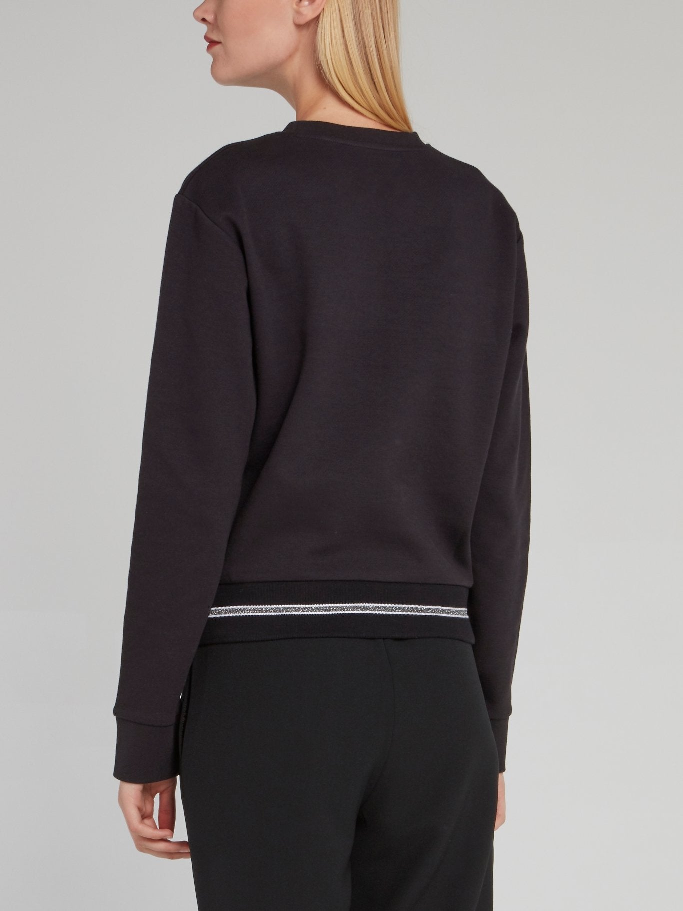 Черный свитшот с логотипом из страз