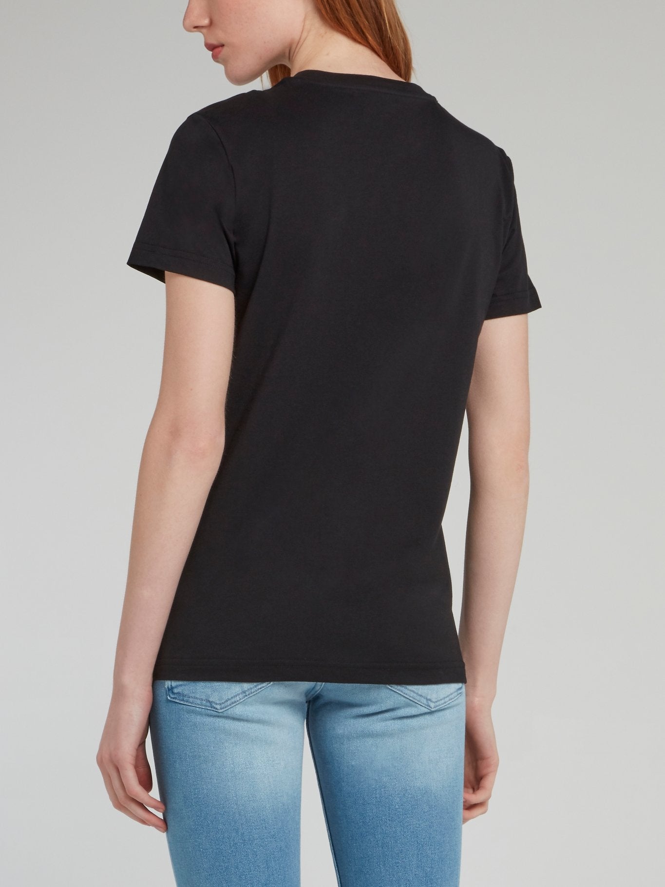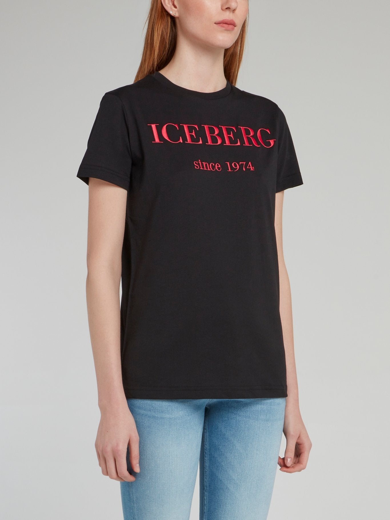 Черная хлопковая футболка с круглым вырезом и логотипом