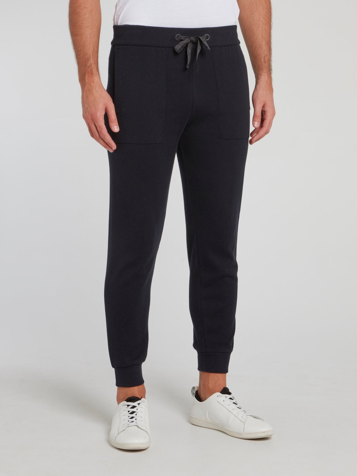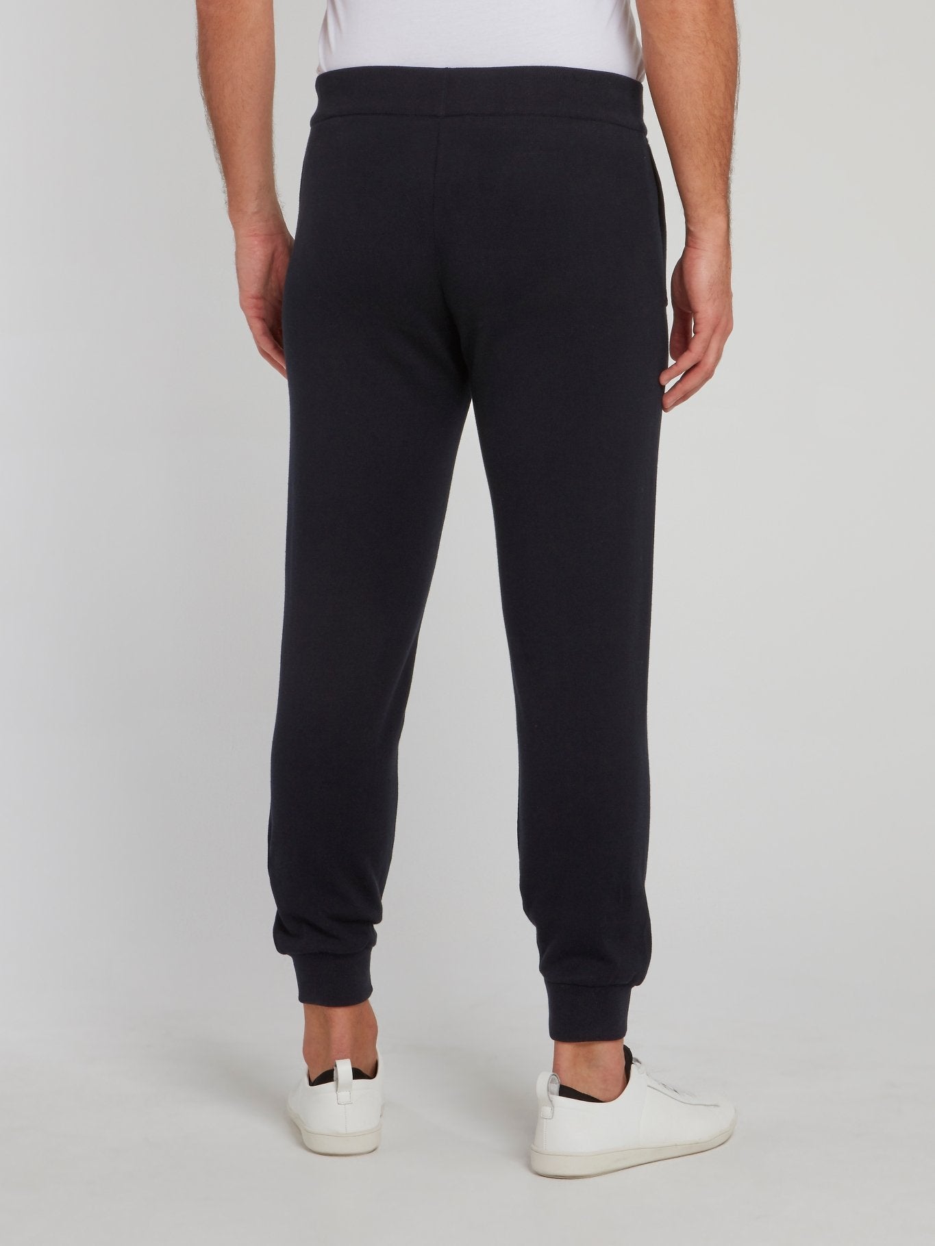 Темно-синие трикотажные брюки с логотипом на лампасах