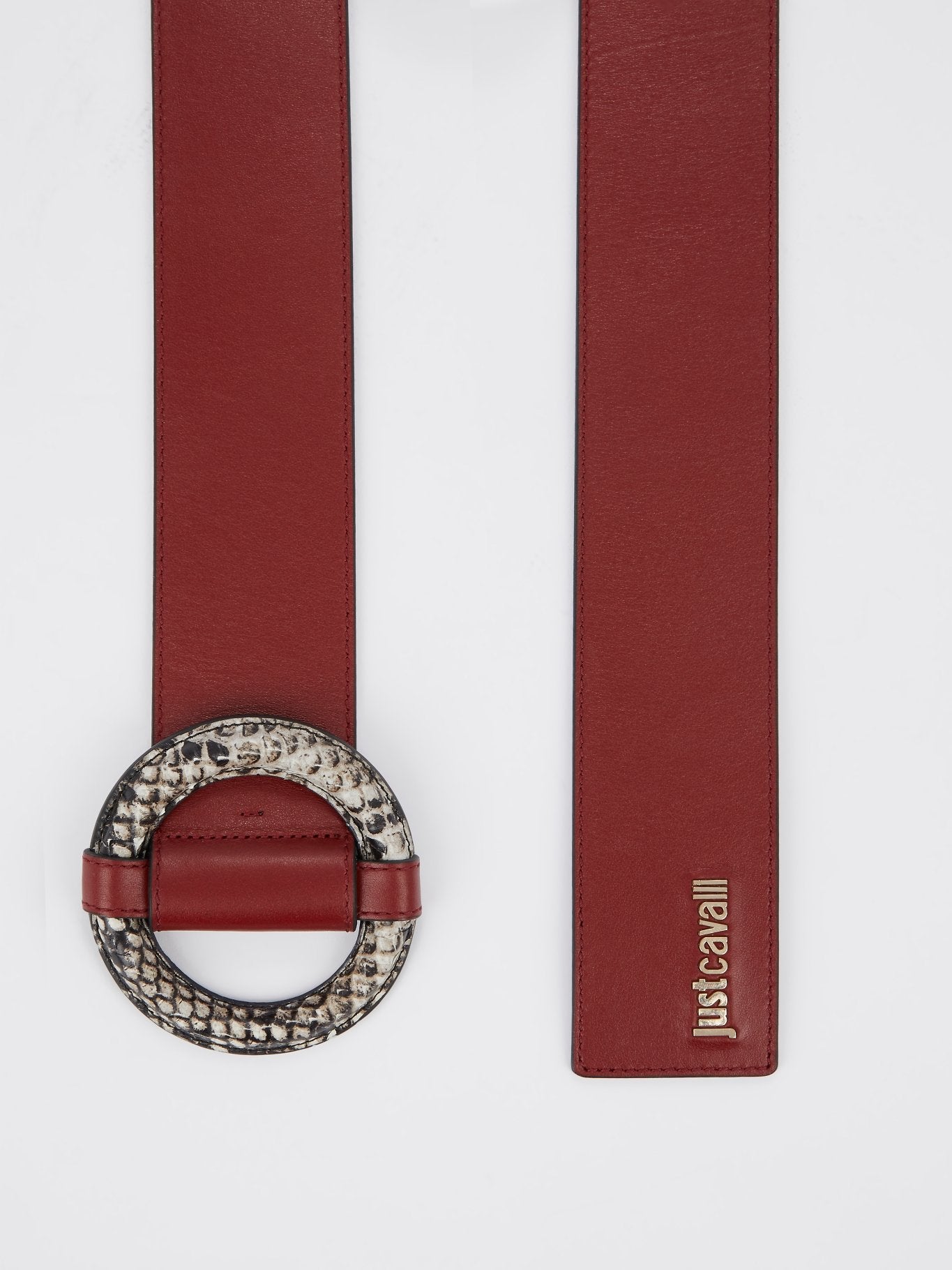 Бордовый ремень с круглой пряжкой с эффектом змеиной кожи