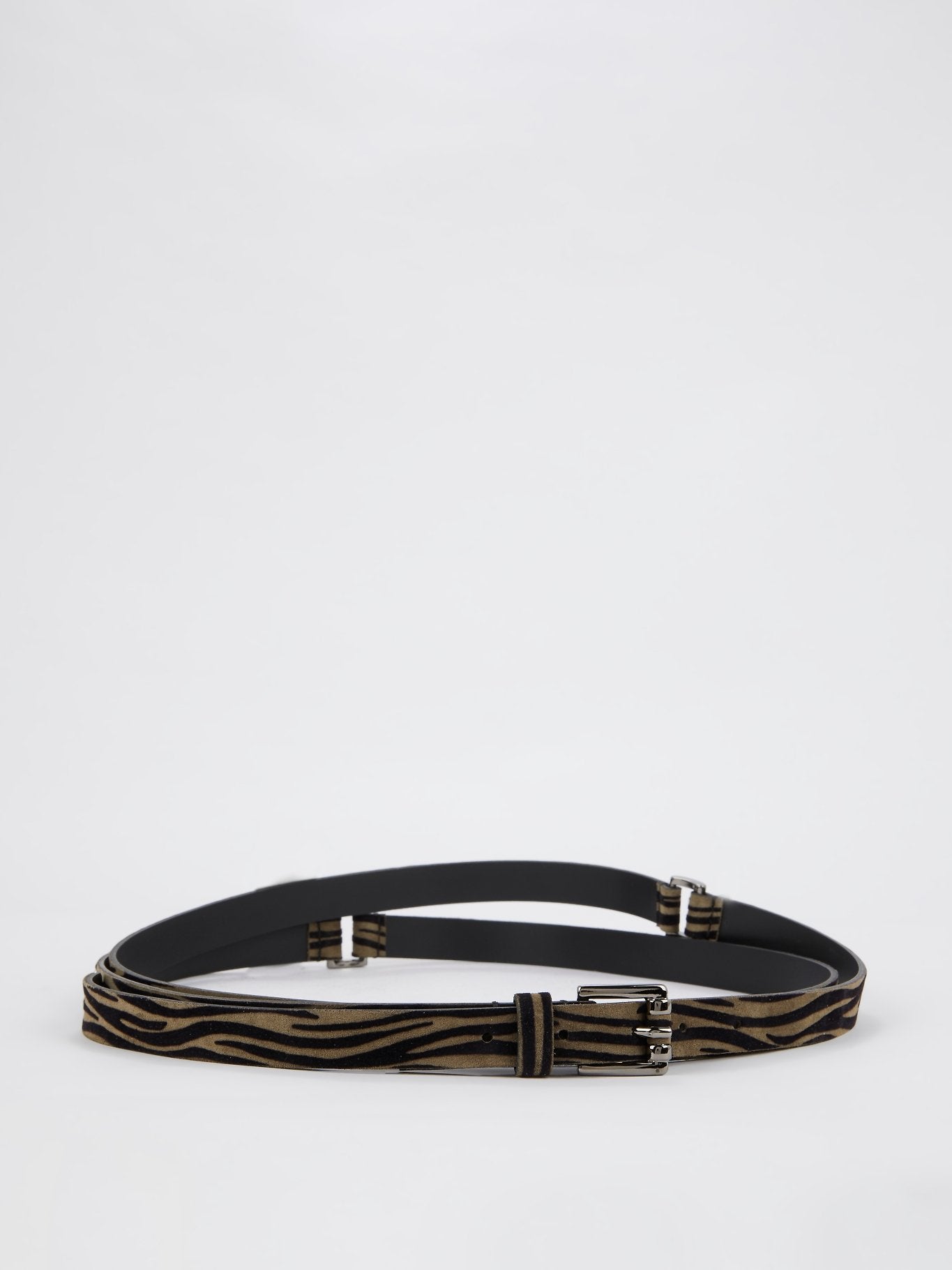 Коричневый замшевый ремень с анималистическим принтом