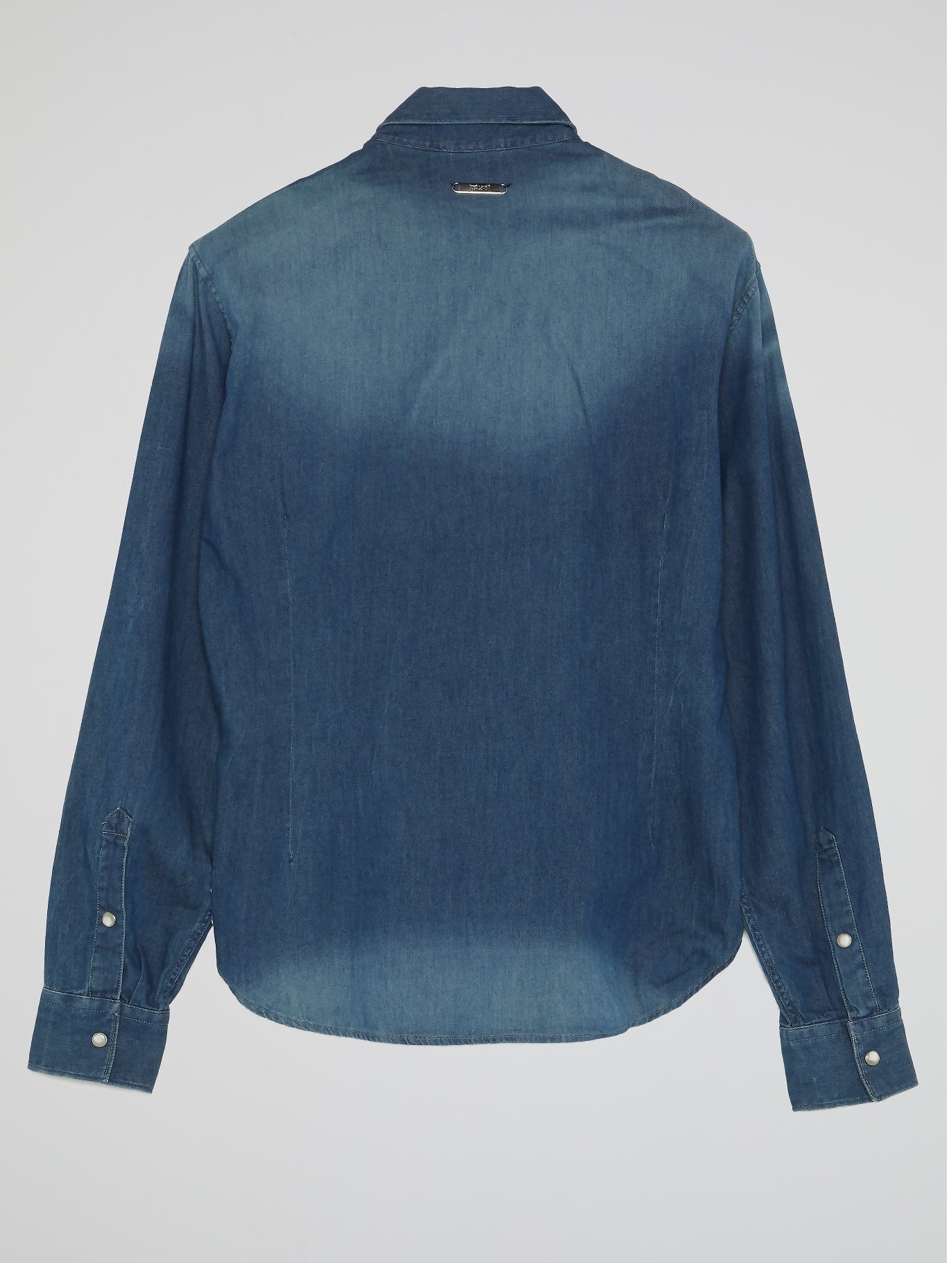 Introducing the Blue Patched Denim Shirt by Just Cavalli – the perfect balance of vintage and modern style. The patchwork design is intricately crafted with attention to detail, adding a playful edge to this classic piece. Made from high-quality denim, this shirt is durable yet stylish, making it a wardrobe staple for any fashion-forward individual.