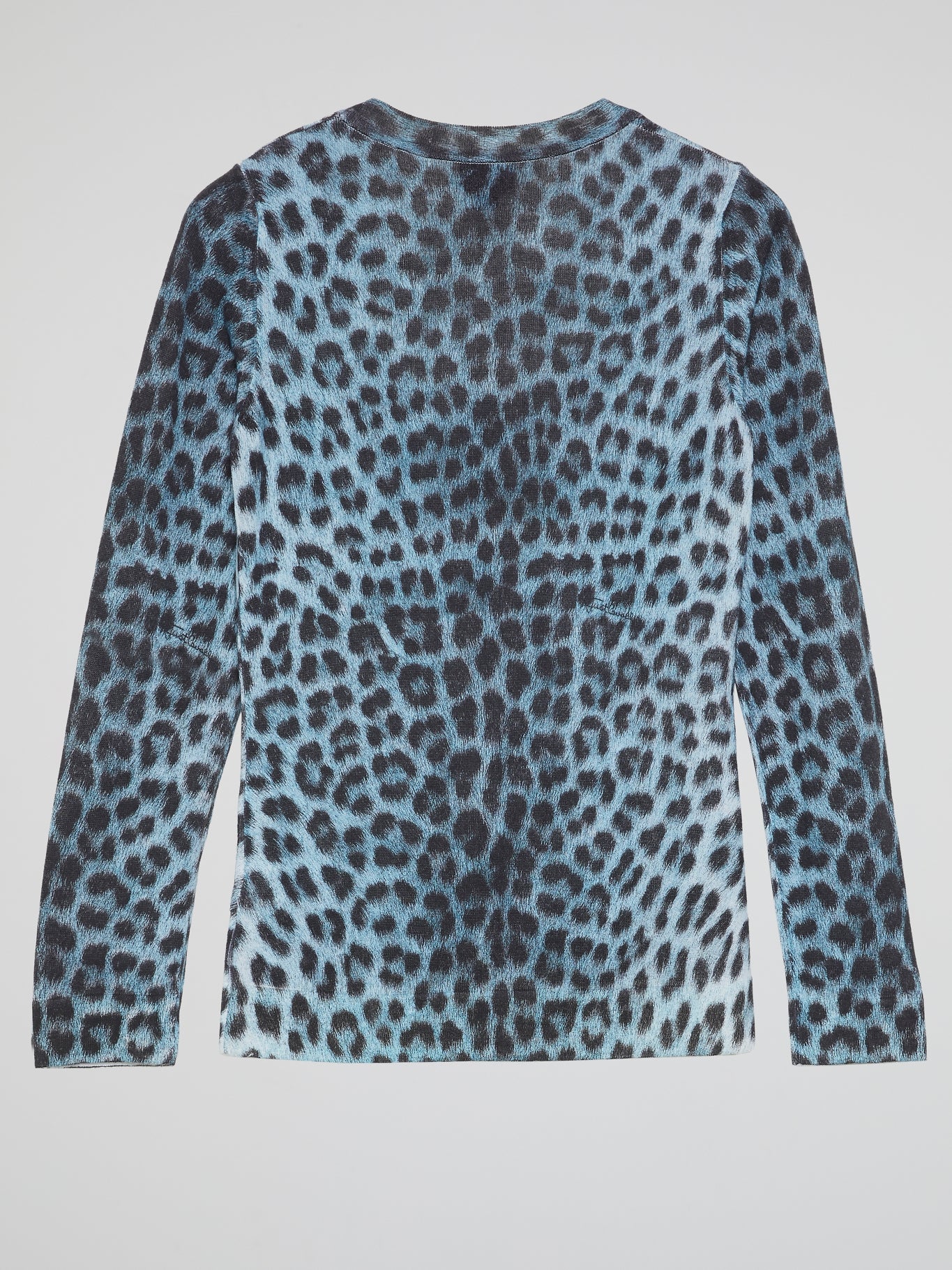 Unleash your wild side with the Just Cavalli Blue Leopard Print Long Sleeve Top. This stunning piece features a bold and vibrant leopard pattern that is sure to turn heads. Crafted from high-quality materials, this top is both comfortable and stylish, making it perfect for a night out on the town or a casual day out with friends. Upgrade your wardrobe with this exciting addition today!