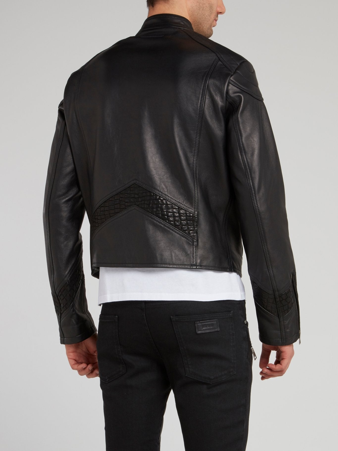 Кожаная спортивная куртка со вставками с эффектом крокодиловой кожи