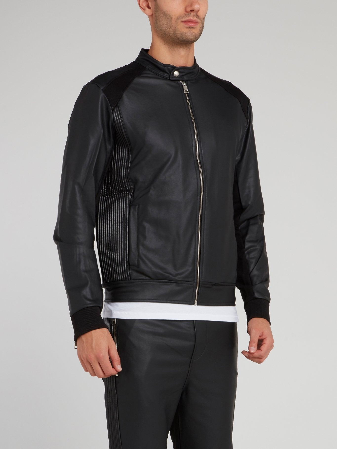 Черная спортивная куртка из кожи