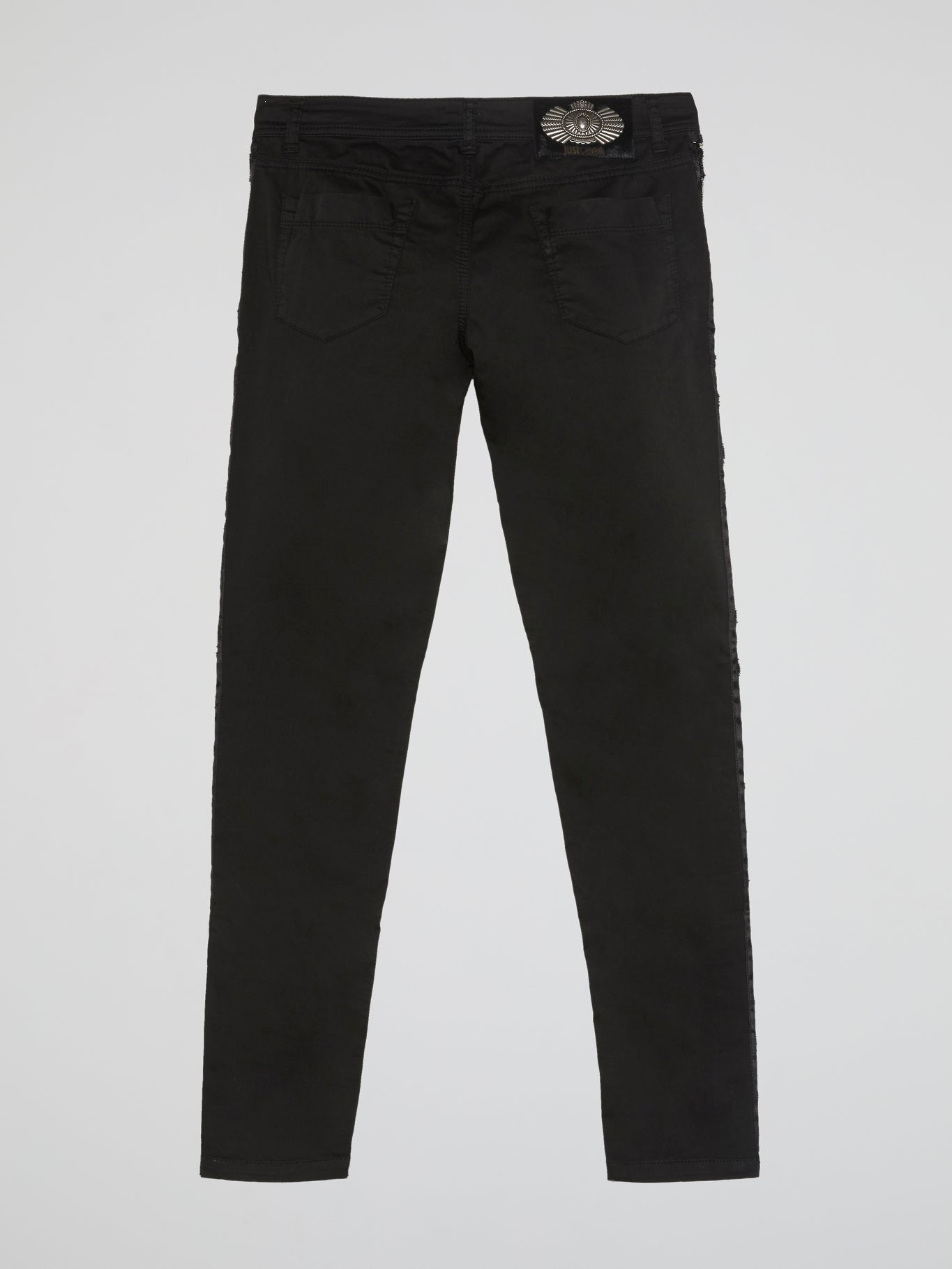 Elevate your style game with these edgy and glamorous Black Side Studded Jeans by Just Cavalli. The stunning design features intricate silver studs running down the sides of the legs, adding a touch of rockstar rebellion to your wardrobe. Crafted with the finest quality materials, these jeans hug your curves in all the right places and are guaranteed to turn heads wherever you go.