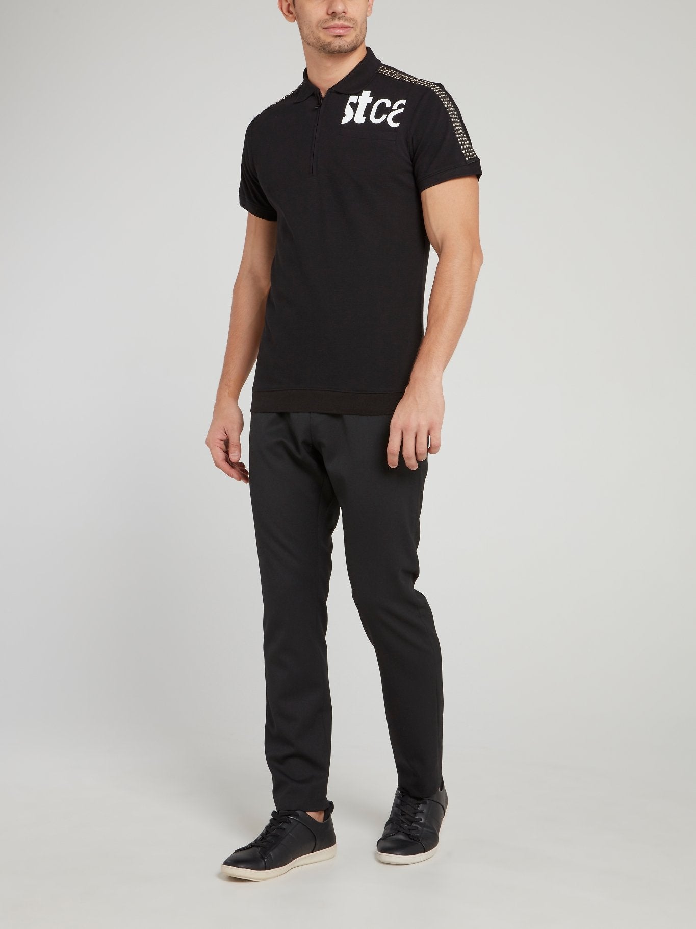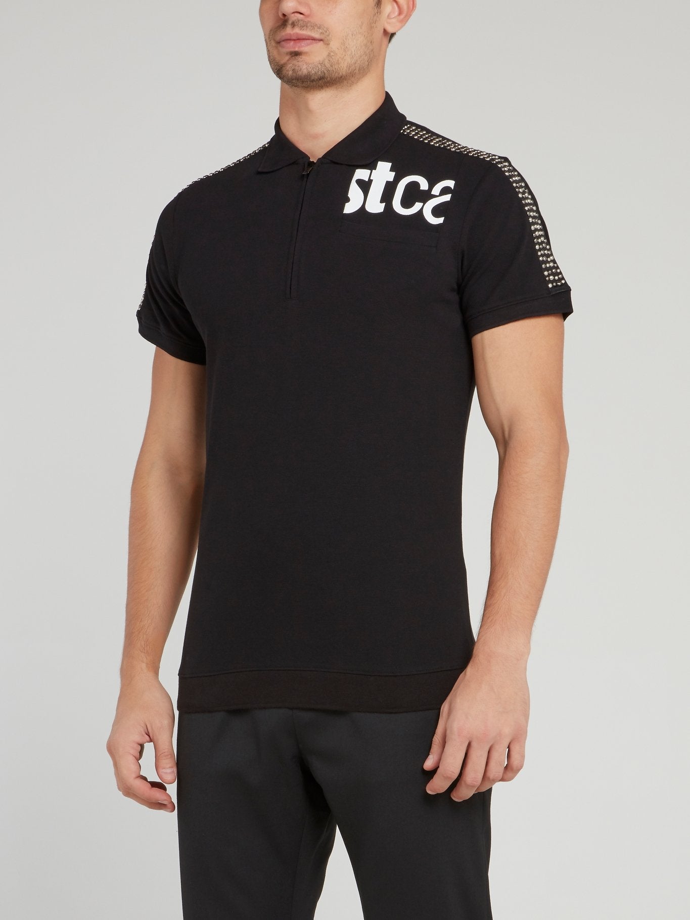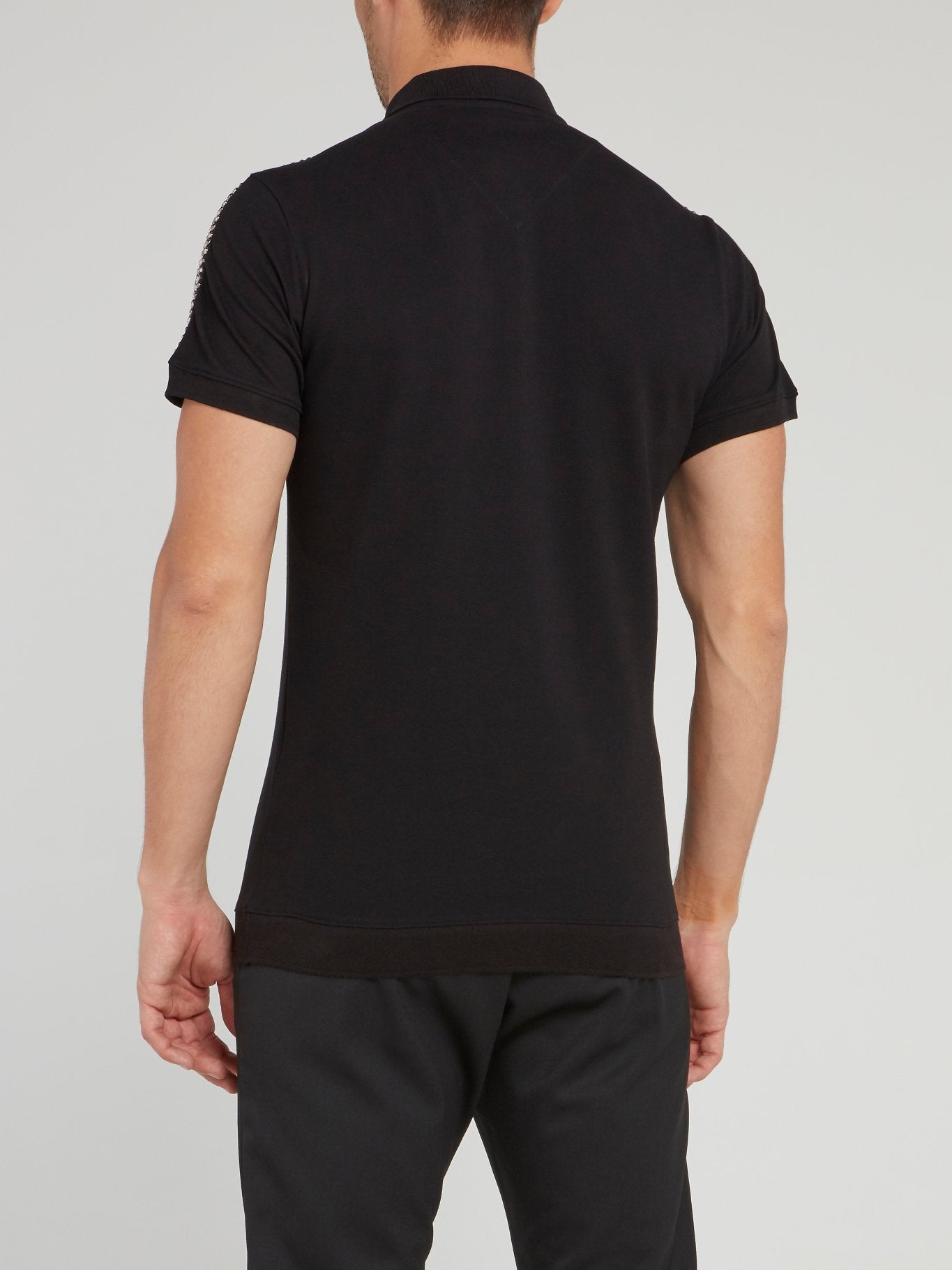 Черная рубашка поло со стразами на рукавах и логотипом