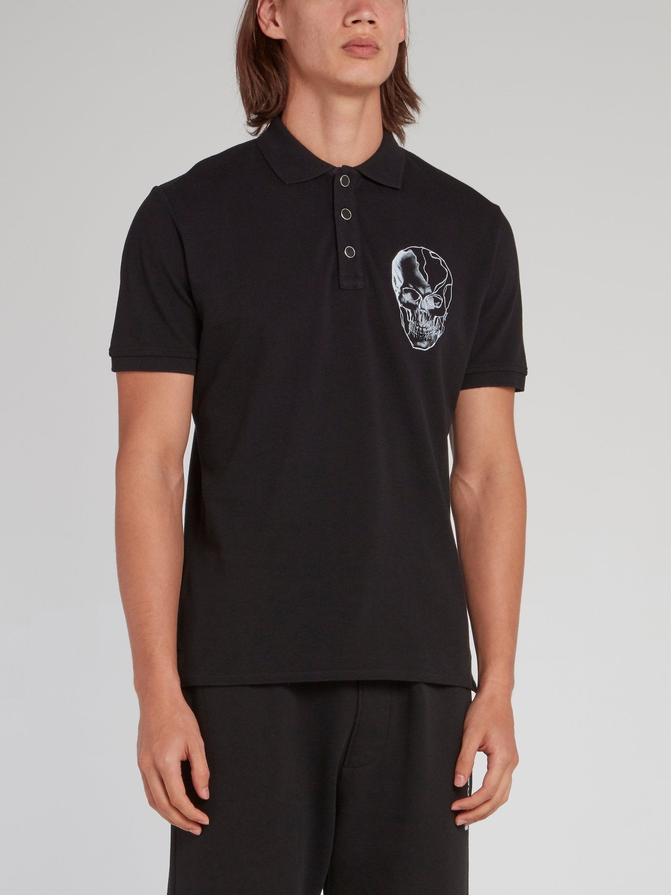 Черная рубашка поло с изображением черепа