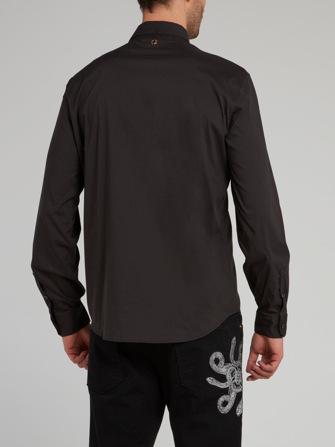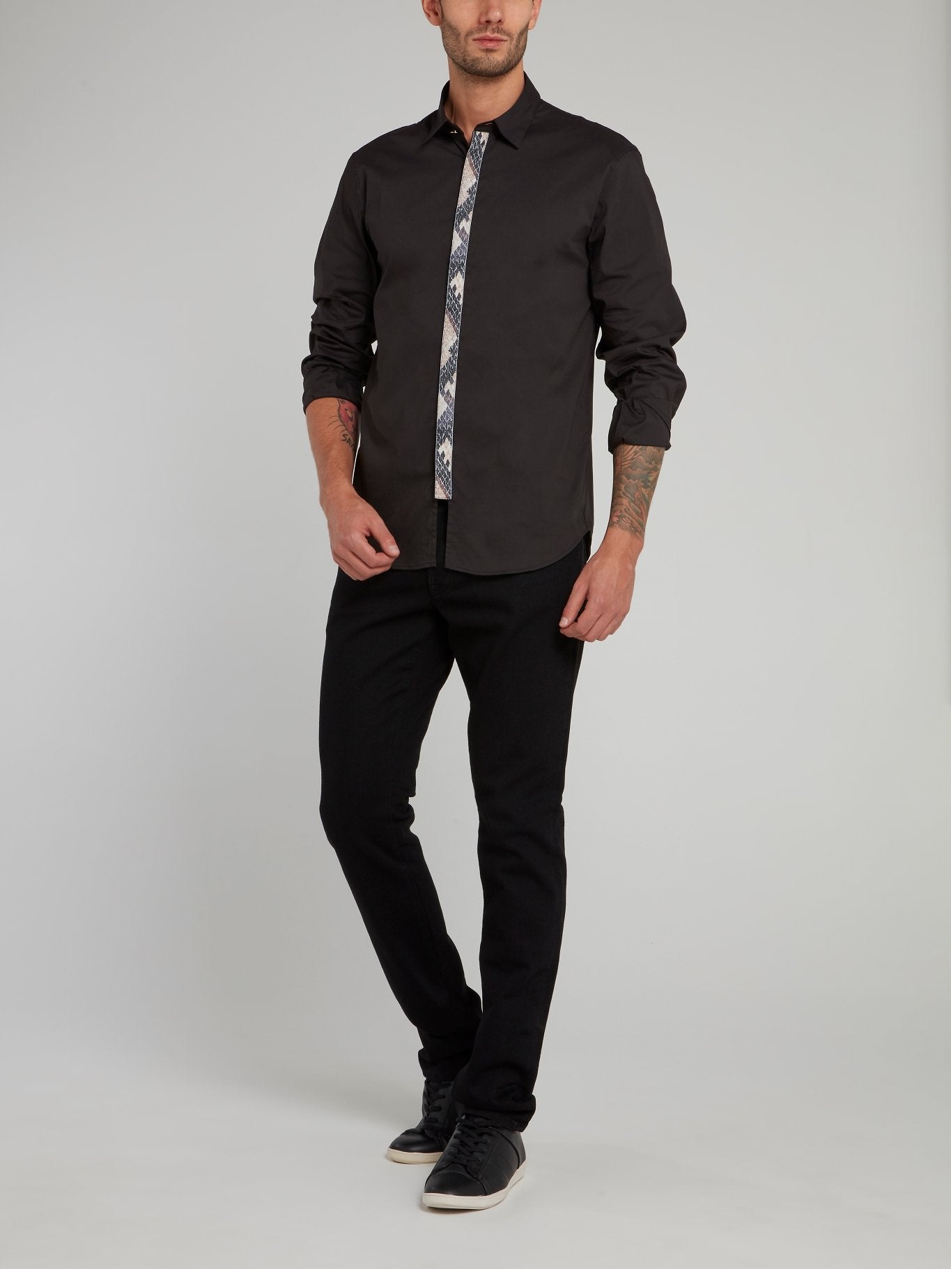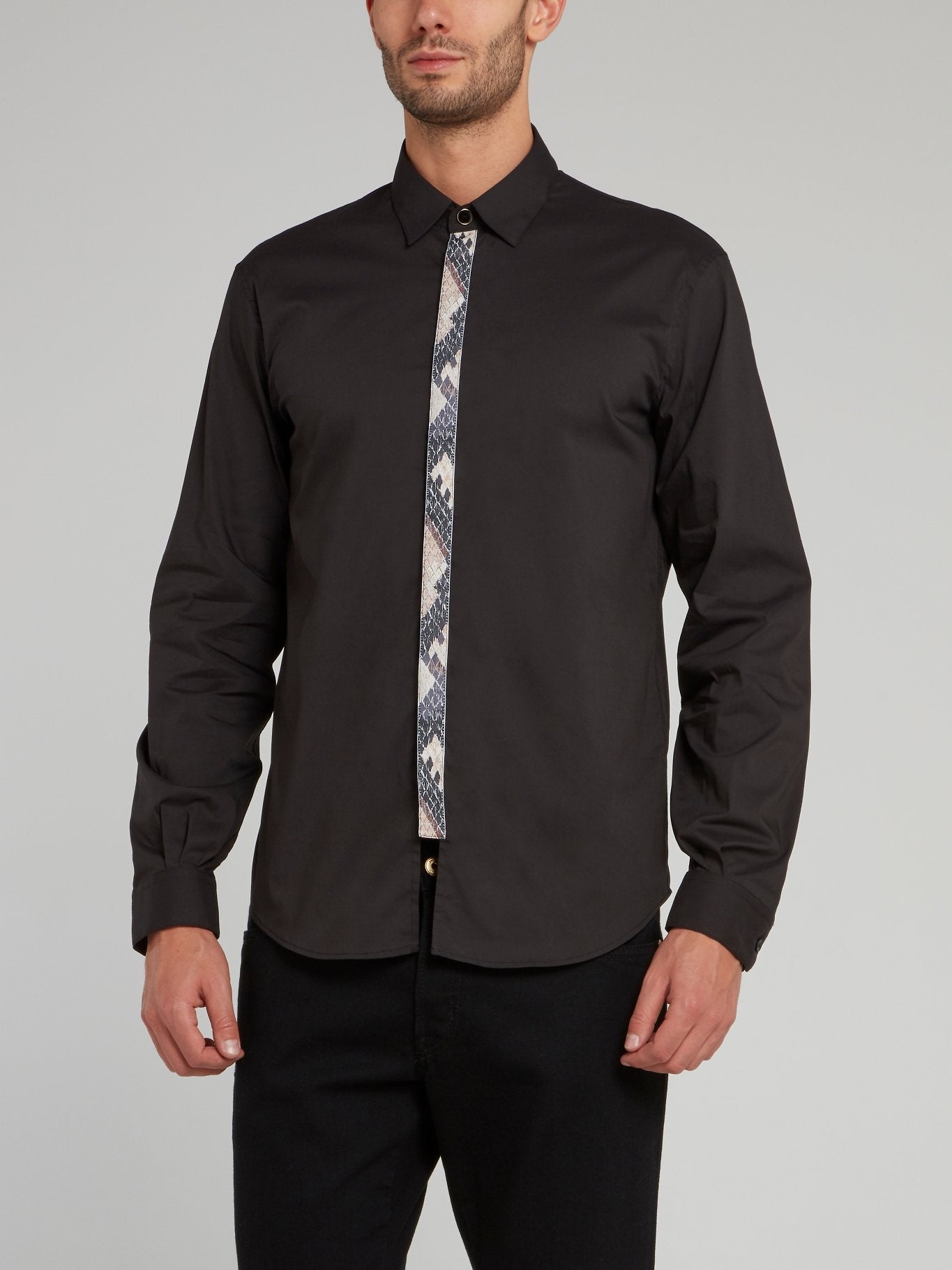 Черная рубашка с длинными рукавами и вставкой с эффектом змеиной кожи