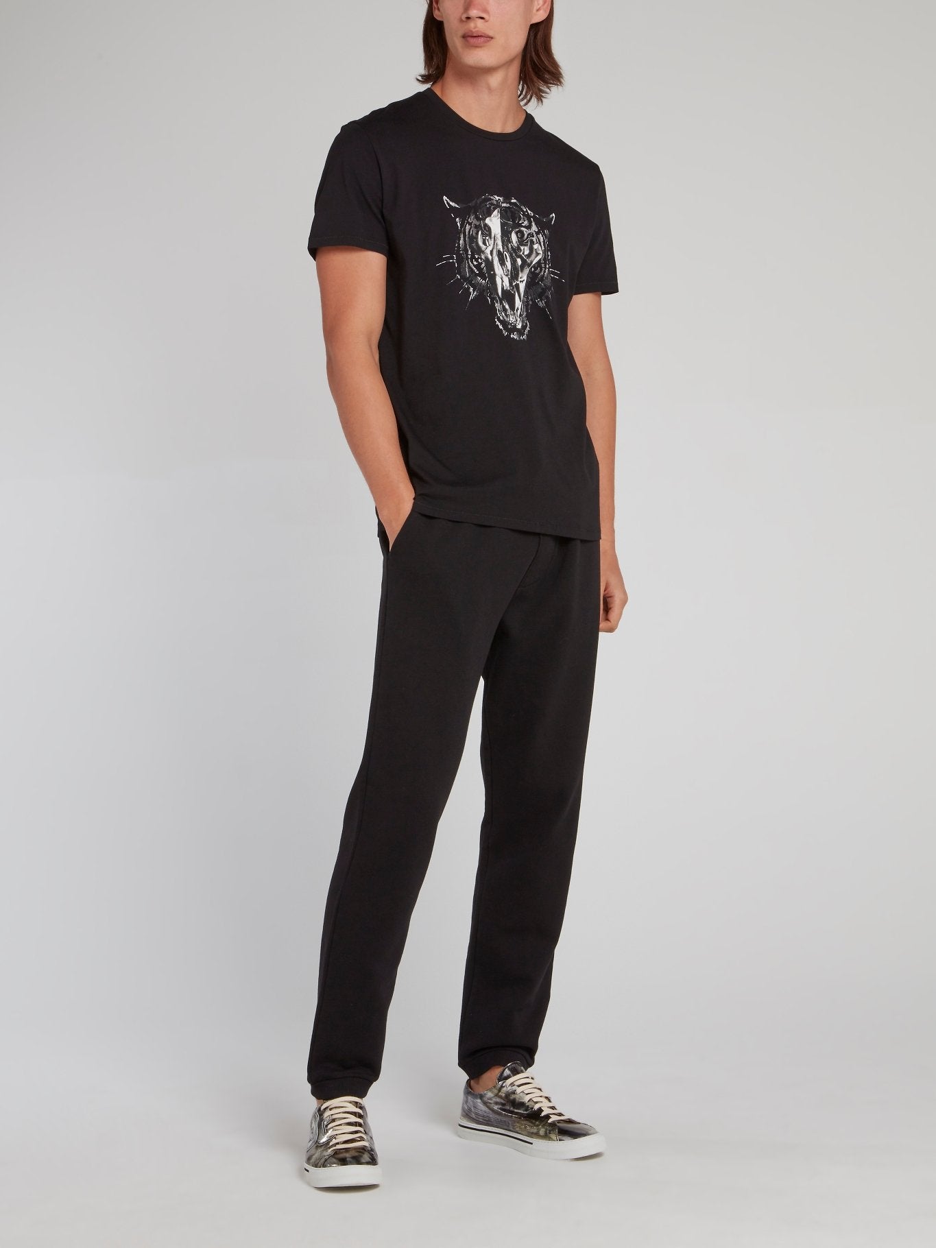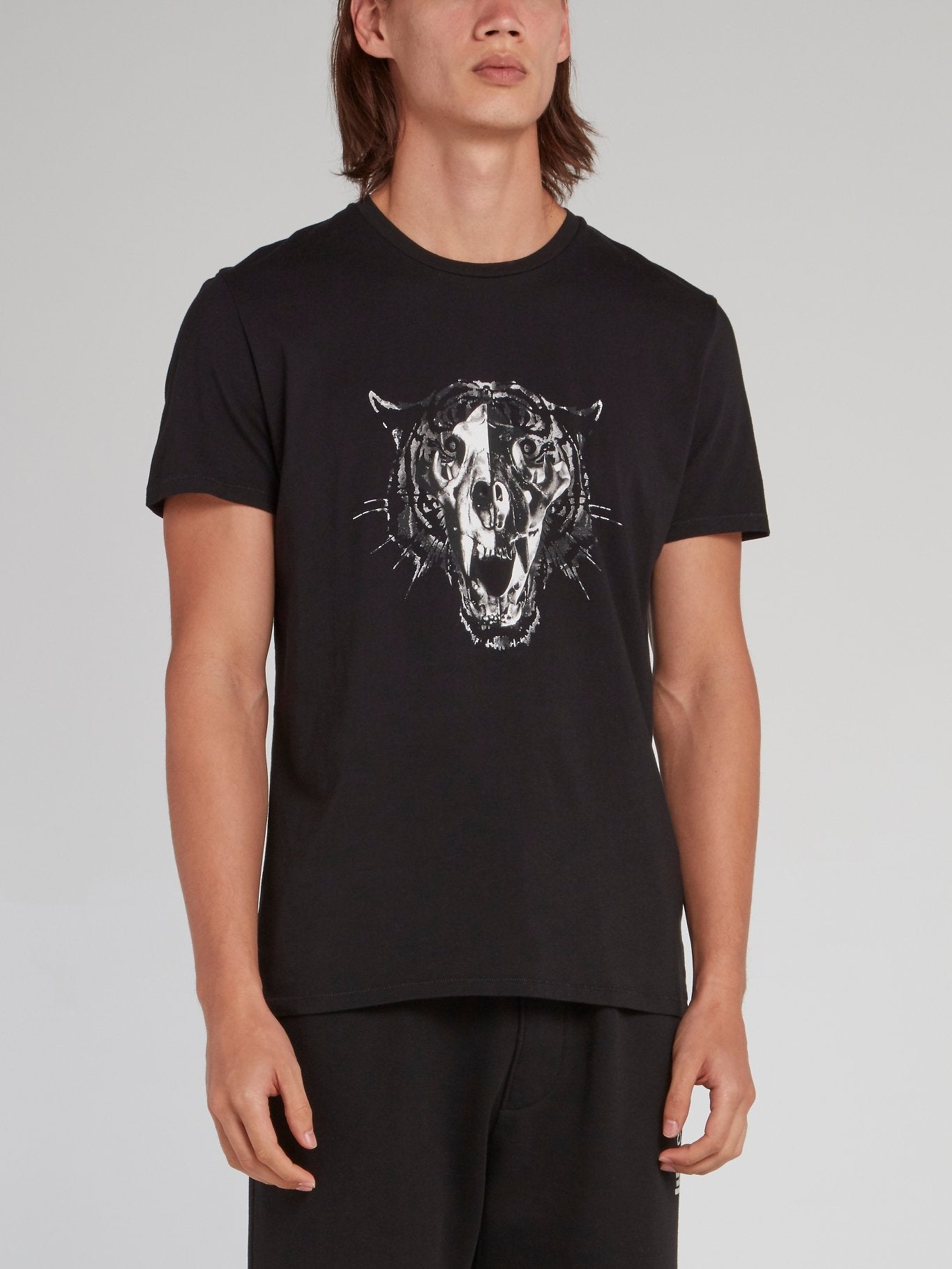 Черная хлопковая футболка с изображением головы леопарда