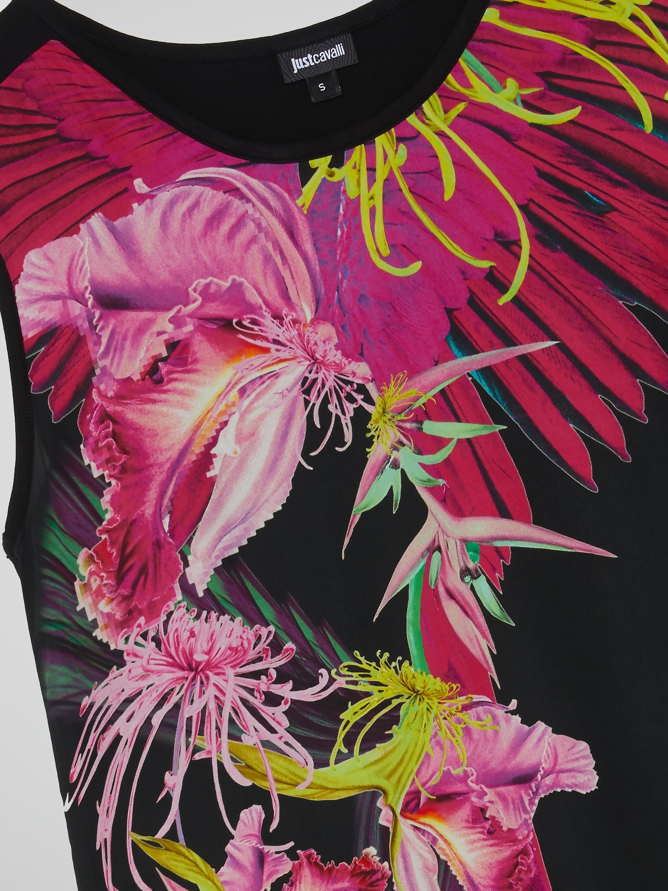 Blossom like the queen of the jungle in this stunning black floral print Just Cavalli tank top. Made of silky soft material and adorned with intricate floral designs, this tank top is perfect for any occasion, from casual brunch to wild nights out. Dress it up with a flouncy skirt and heels or keep it chill with your favorite jeans and sneakers. Make a fierce statement wherever you go with the Just Cavalli Black Floral Print Tank Top!