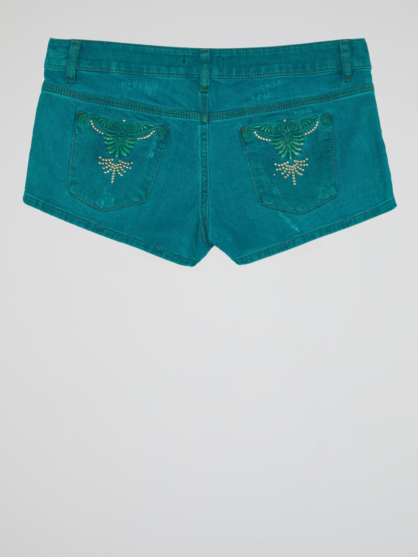 Discover your true style with the effortlessly chic Teal Distressed Shorts from Just Cavalli. These stunning shorts are the perfect blend of comfort and style, featuring a flattering cut and a unique distressed finish. Ideal for any occasion, dress them up with heels for a night out or pair them with flats for a day in the sun.